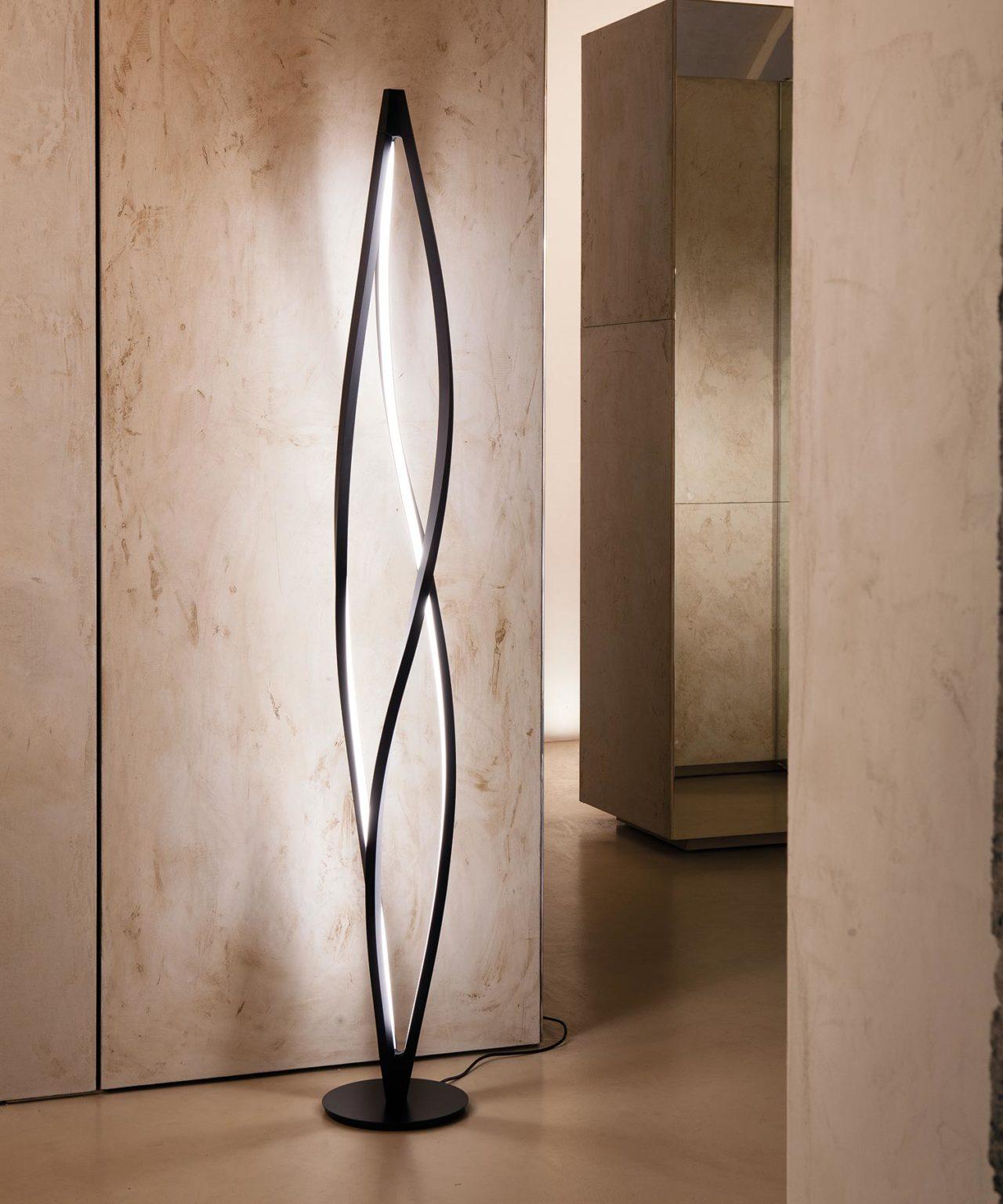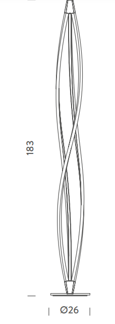 Floor lamp In the Wind is made of extruded aluminum, the twisting of which allows diffuse lighting in the 360 ° range. The spiral shape was achieved thanks to the technique specially developed by Nemo. Diffusers are made of iridescent metacrylate and tips made of cast aluminum.