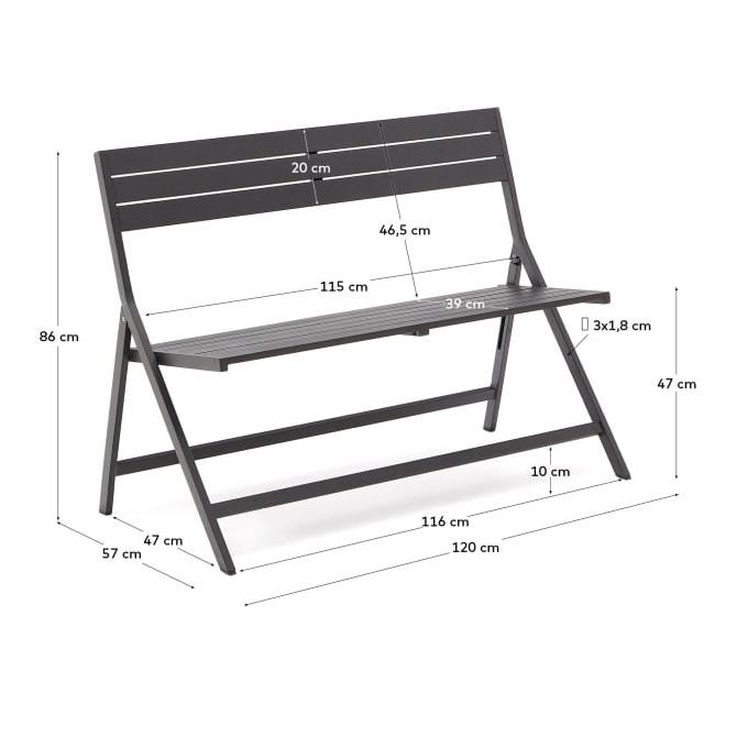 Folded garden bench black Torretta