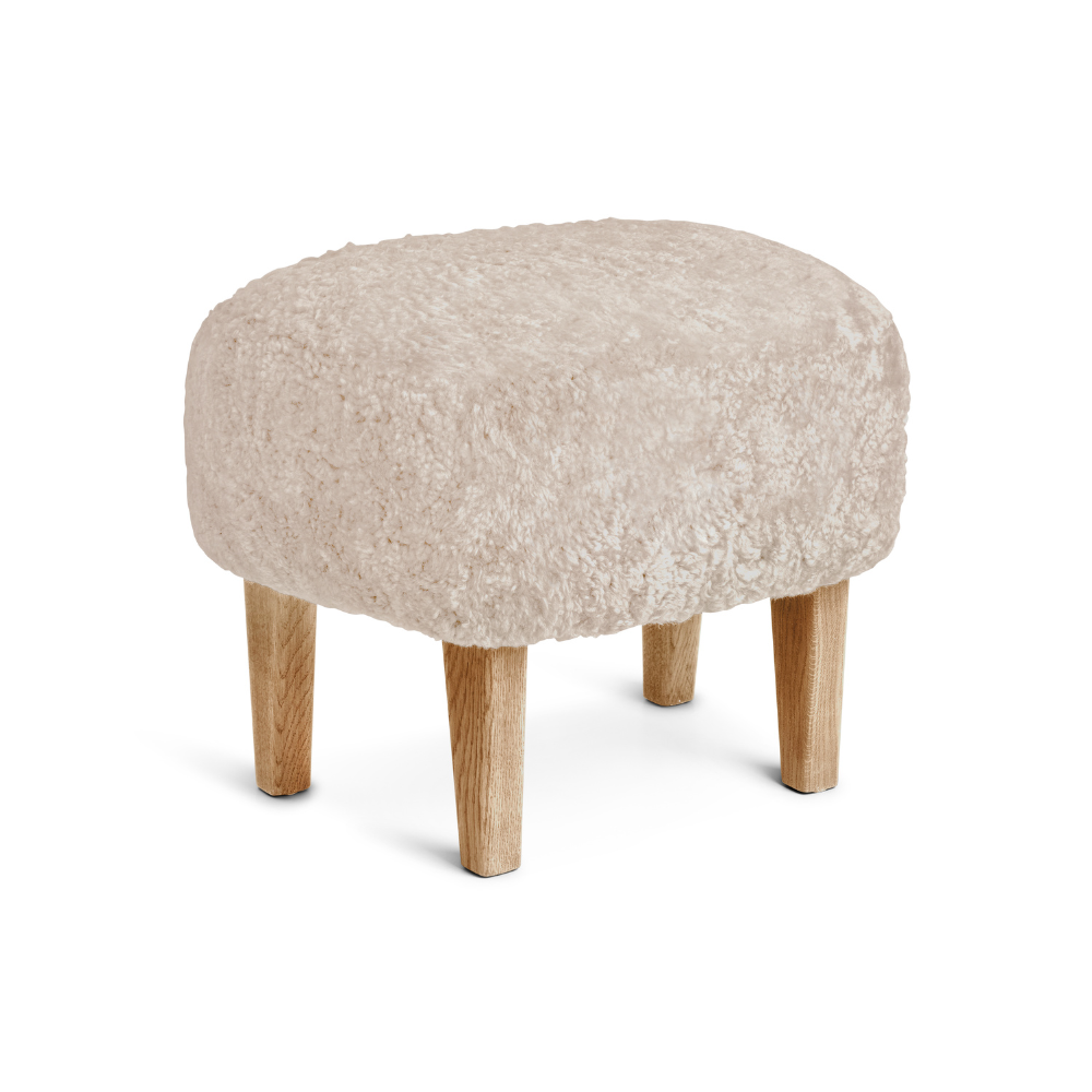 INGEBORG Footstool Sheepskin with Oak Base