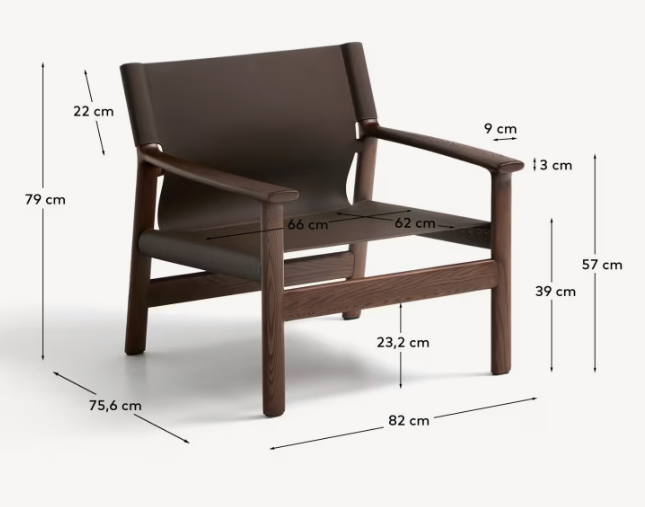 JAN armchair in brown recycled leather with dark ash wood