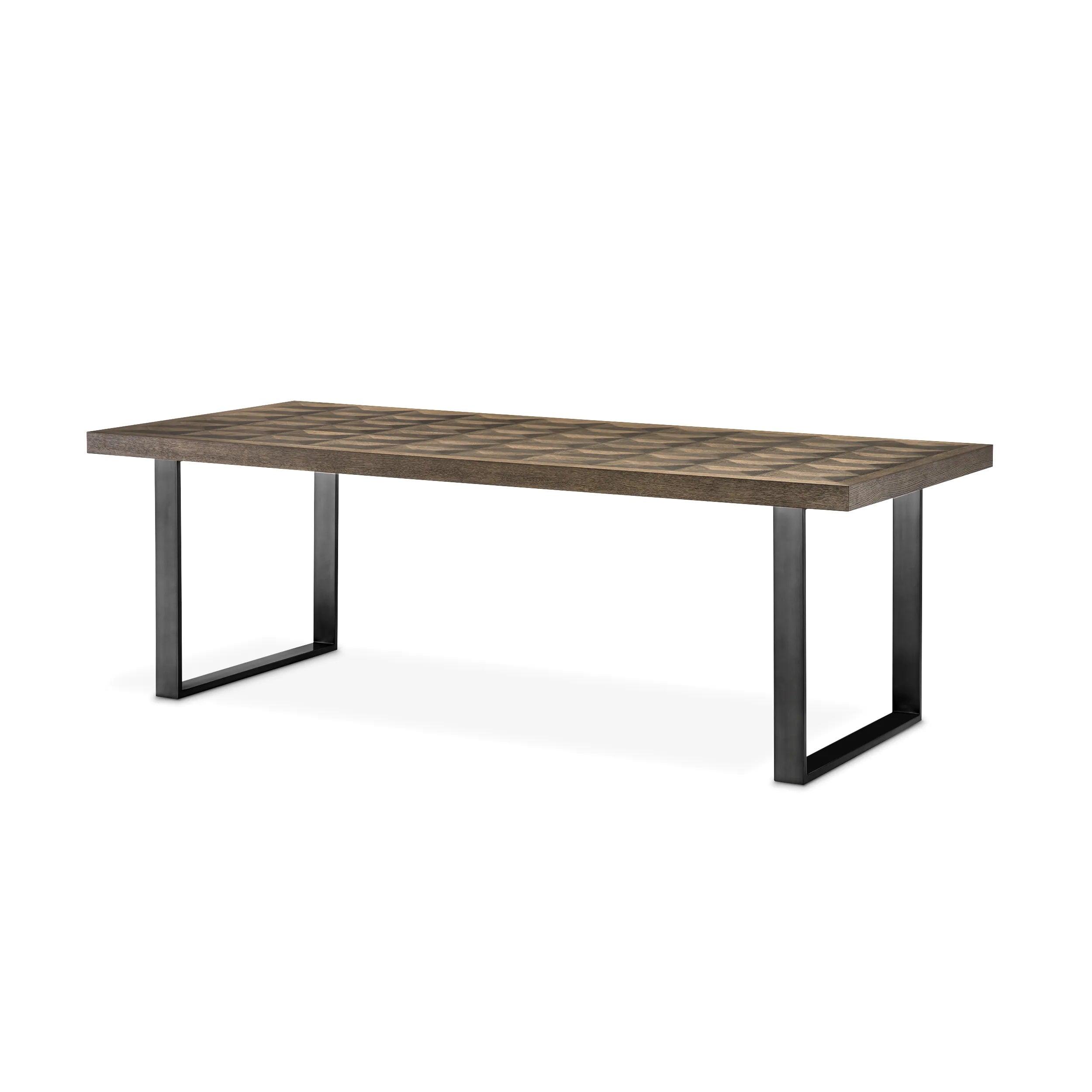 At first glance, its inlaid countertop attracts the attention, where the geometric pattern, perfectly matched pieces of veneer, creates a fascinating 3D optical illusion. This extraordinary technique adds depth oak table And it makes the countertop become a point of attention.