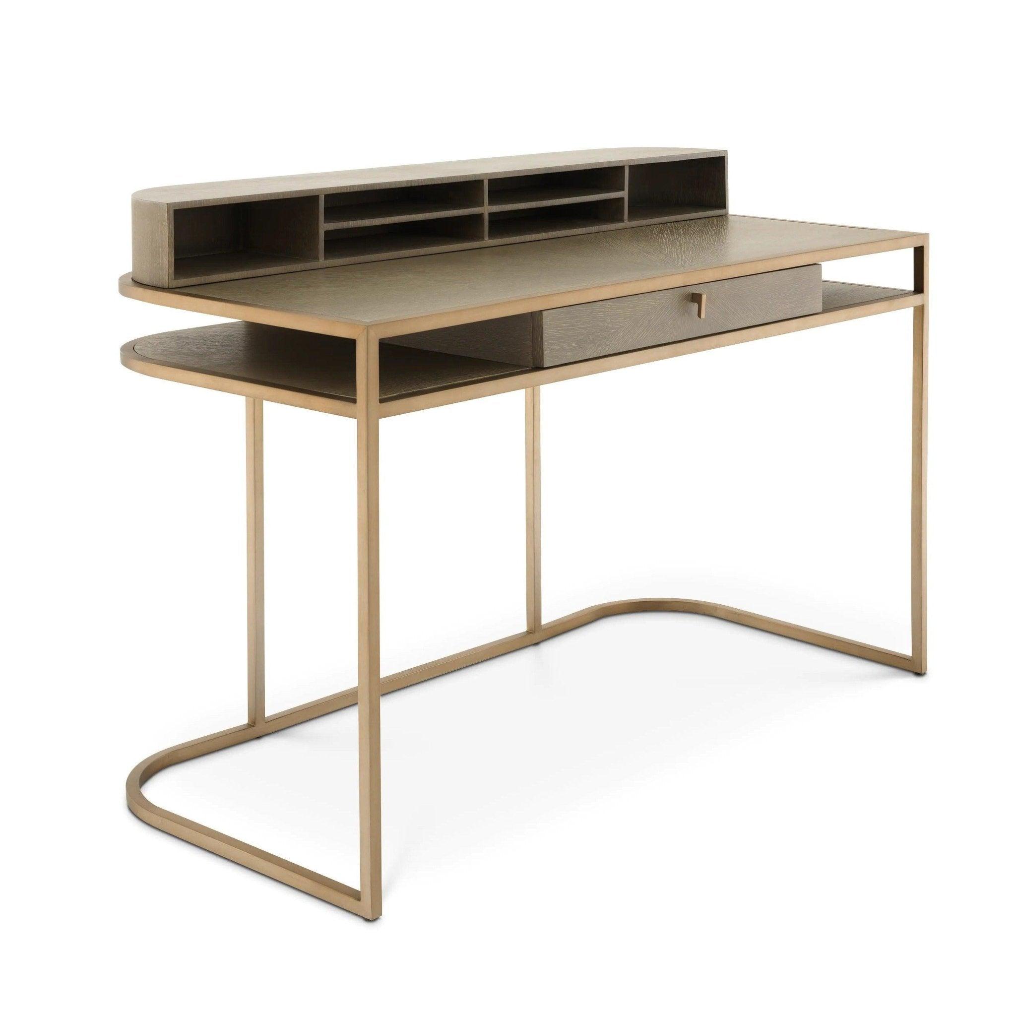 Desk Highland is a tribute to classic Danish furniture from the mid -20th century, which became design icons. Its streamlined lines and oak veneer exude warmth and elegance, reminding about the golden times of European design. One drawer, embedded on a solid metal frame with a brushed brass finish, adds functionality to the desk, while emphasizing its retro character.