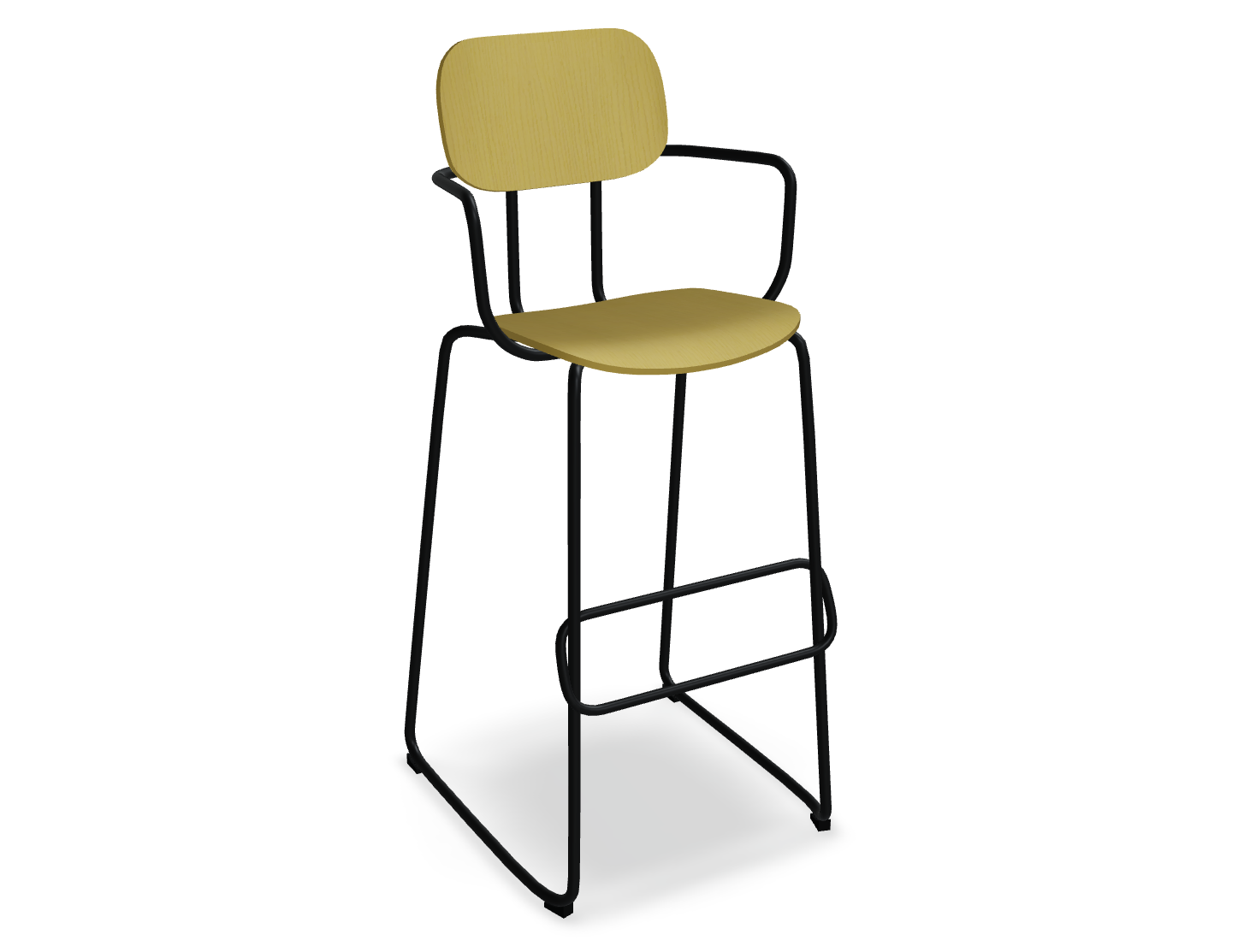 Hoker New School, designed by Studio Form US with Love, is a modern reinterpretation of a traditional school chair. This stool is perfect for office canops, bars, cafes and kitchens with a high top. Available in two heights, it allows you to match various countertops. It is distinguished by an integrated footrest and optional armrests, which increases the comfort of use.