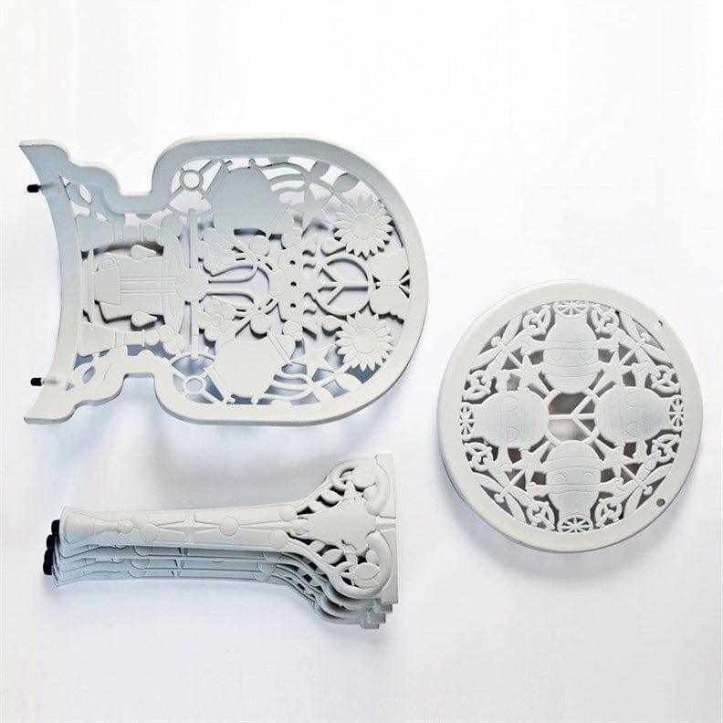 Exceptional garden armchair In the Victorian style in a new, avant -garde edition is the work of the Italian brand Seletti. The back and sitting hide numerous, unusual patterns, such as gears or flowers, which gives the whole a unique character.