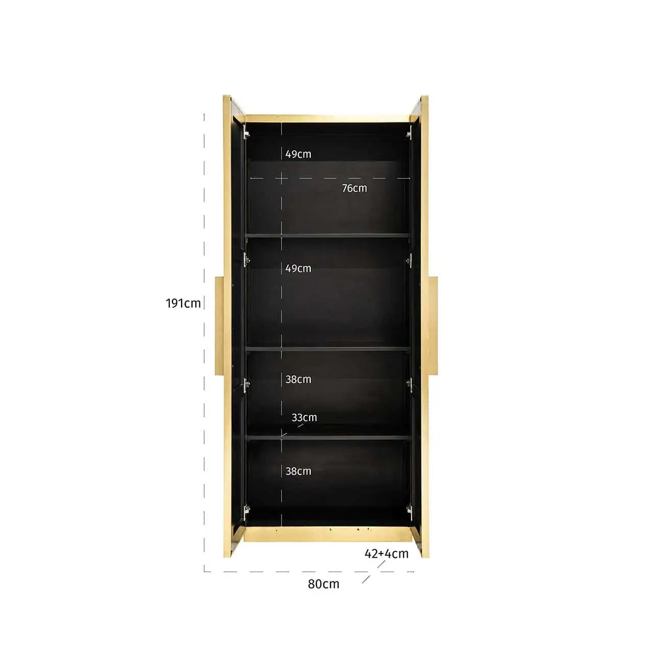 Ironville two-door wardrobe in brass color is a harmony of aristocracy in a modern edition. It looks best in spacious interiors. Each element of the Ironville collection has been carefully crafted from high-quality materials. The metal details combined with the right lighting brighten up any room. Black hues and golden shades are the recipe for an interior with a distinctive character.