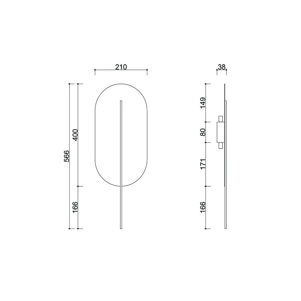 Rokke wall lamp by Ummo is a blend of modern elegance and a unique shape inspired by the silhouette of a feather. Its slender, oval design with decorative grooves creates a minimalist yet striking lighting composition.
