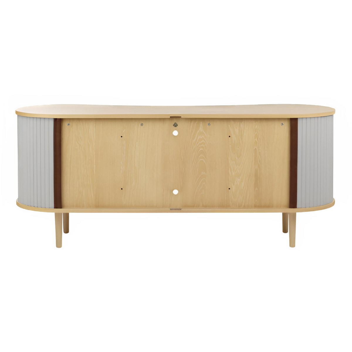 The distinctive tambour sliding doors made of fabric not only catch the eye but also give the furniture a subtle, luxurious expression. Adjustable shelves and discreetly hidden openings in the back panel allow for the storage of audio-visual equipment without disrupting the aesthetic of the interior. Moreover, the tambour doors can be easily replaced, giving the chest of drawers a new look without the need to replace the entire piece of furniture — an environmentally friendly and durable solution.