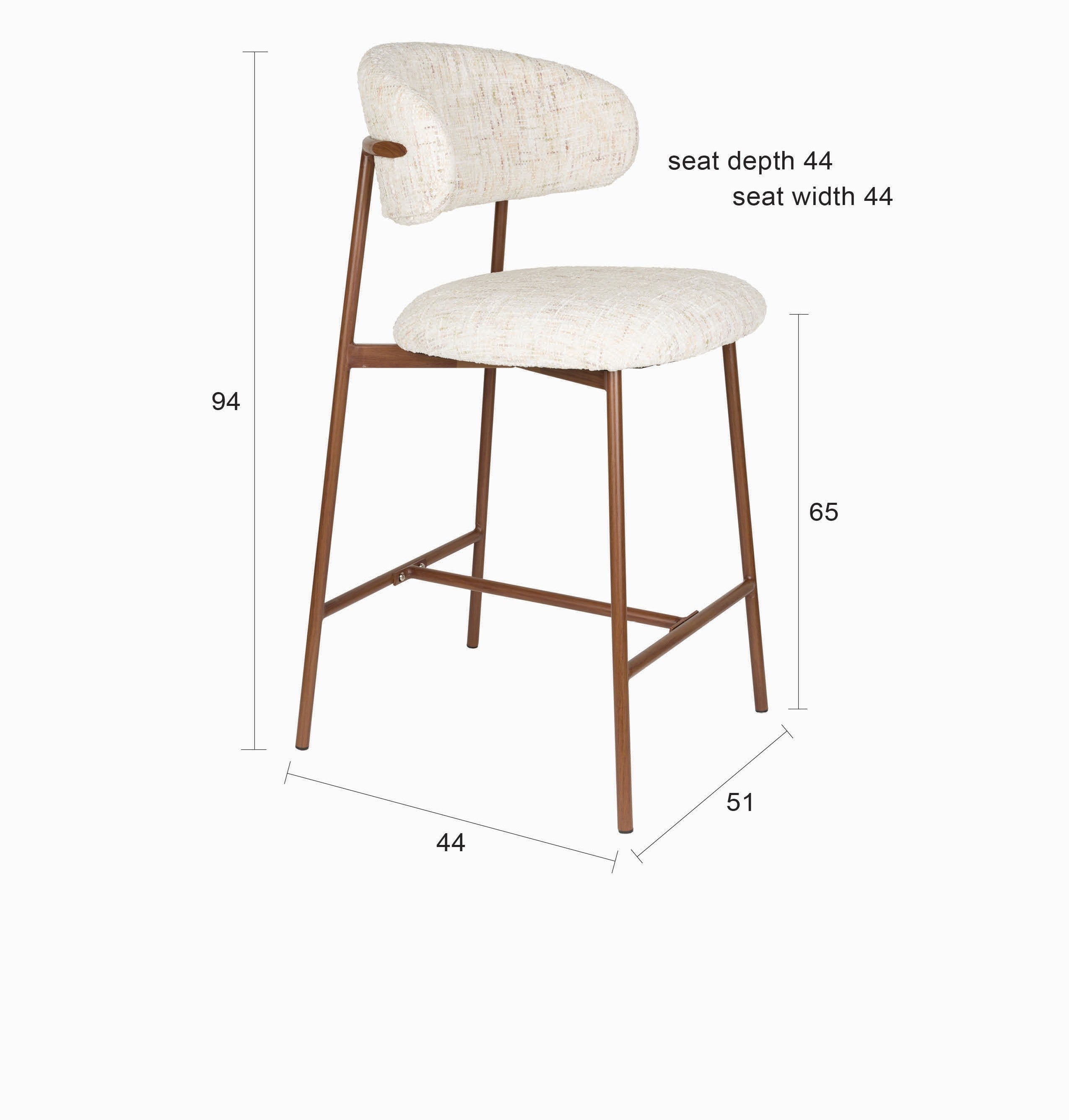 CLAES Bar Stool Light Beige Mélange with Brown Base