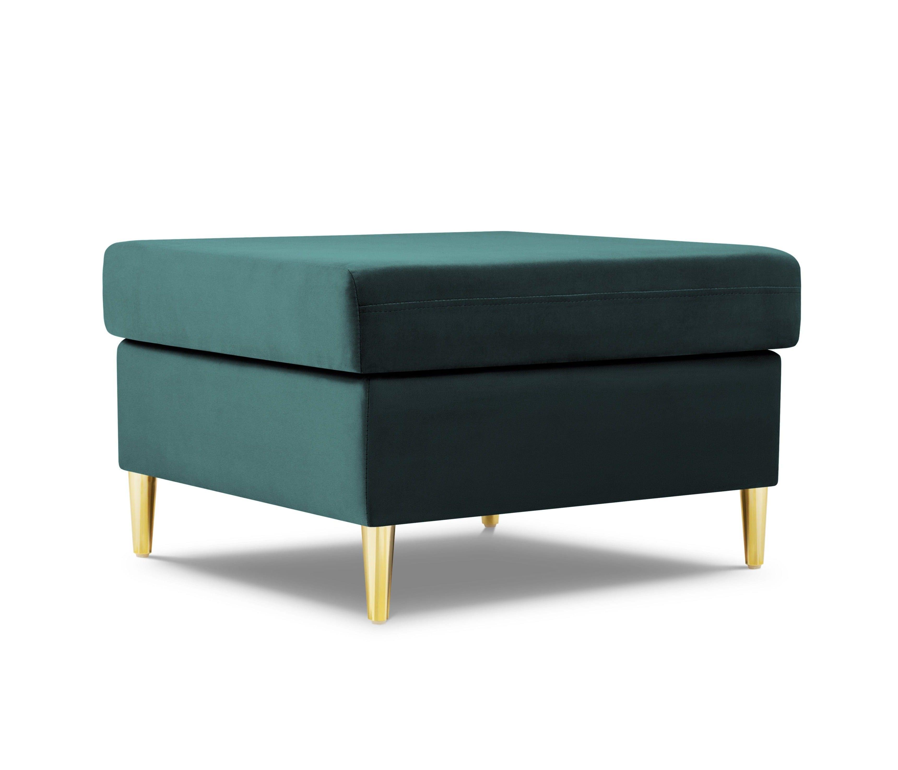 Kyoto Petrol velvet pouf with a golden base