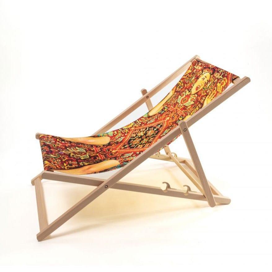 Designer sunbed Lady on Carpet from the Italian brand Seletti is a guarantee of constant holidays! Sit comfortably, take your favorite magazine and drink a drink as if nobody watched you. The sunbed is made of high quality beech wood and UV resistant material. It has a three -stage backrest adjustment.