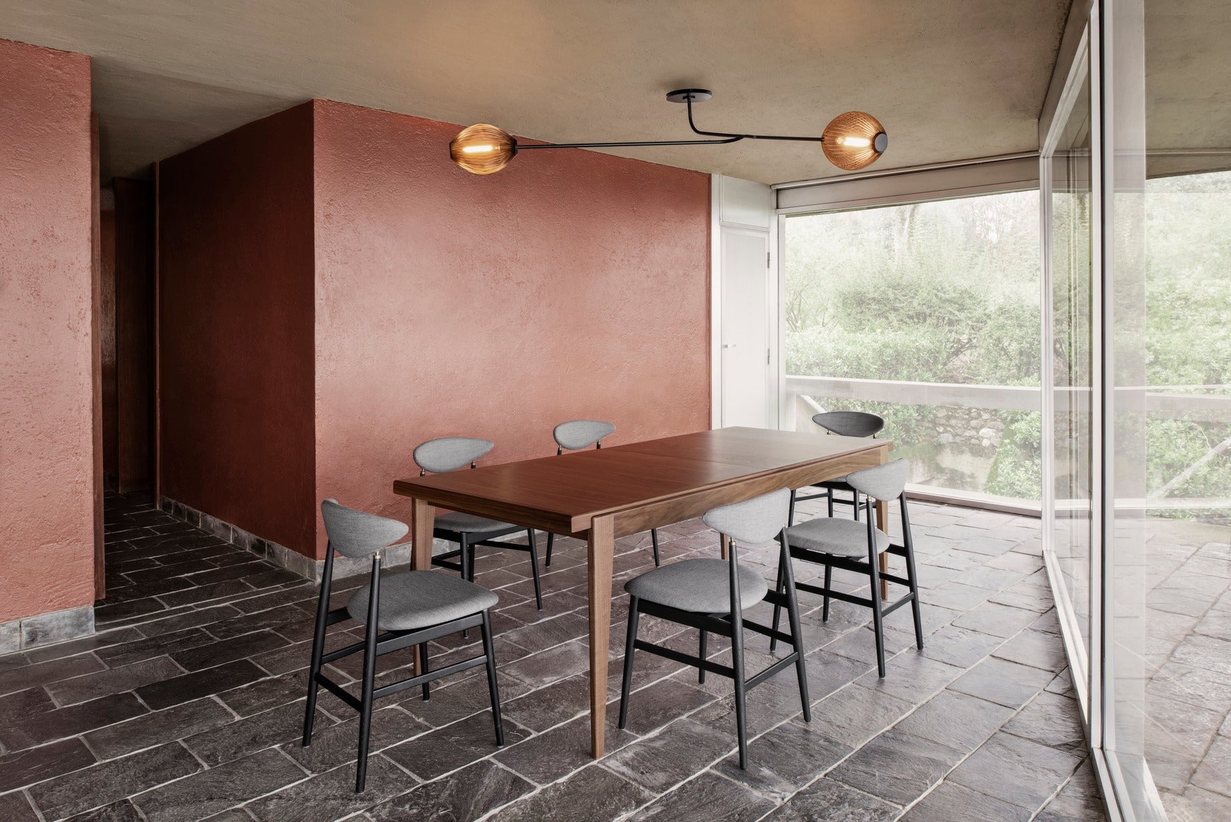 Wall lamp Satellite is an iconic design by Mathieu Matégot from 1953, which has made a comeback in interiors after nearly 70 years – now in a refreshed, faithful version of the original. Its sculptural form, composed of geometric shapes and two shades made using the rigitulle technique, emanates lightness, modernity, and artistic sophistication. The play of light and shadow created by the perforated surfaces gives the interior a moody and somewhat theatrical character.