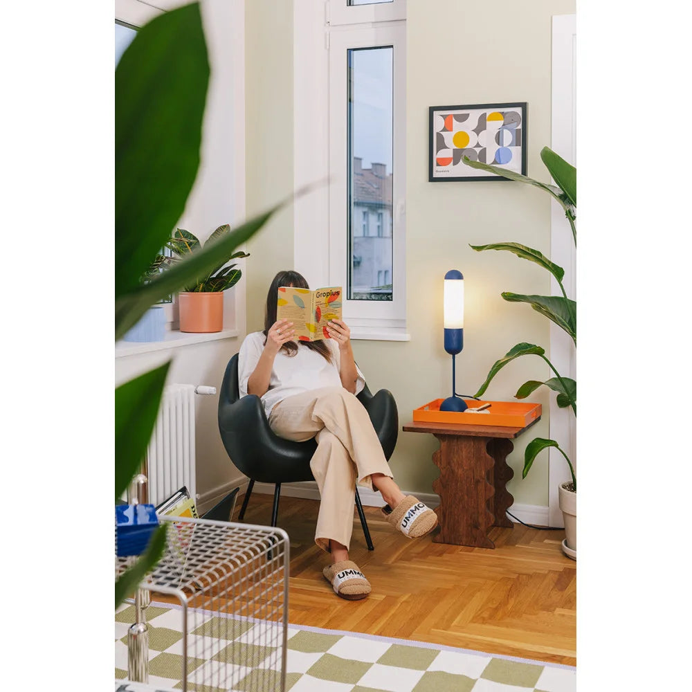 Natural wood details and a subtle, slender design give the lamp a unique character. Funsui is perfect as ambient lighting on a dresser, desk, or nightstand, fitting seamlessly into both modern and classic arrangements.
