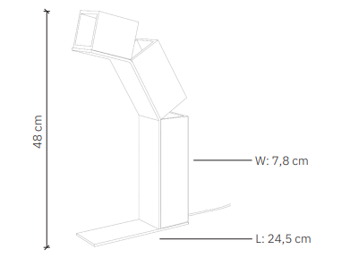 Designed by Joseph Caspari and Cezary Zadorożny, it consists of three concrete segments arranged at an angle, set on a precisely crafted stainless steel structure. Integrated LED light sources hidden within the form emit warm light in two directions – upwards and downwards – creating an intriguing play of light and shadow.