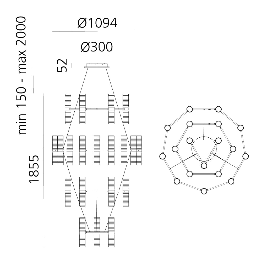 The central element of each module is a double cylindrical diffuser made of transparent glass, crafted using the technique of hand-blowing. Its wavy edges and polished tips create a horizontal texture that effectively diffuses light without glare. The modern chandelier Zephyr not only adorns but also provides excellent control and distribution of light, offering functionality at the highest level.
