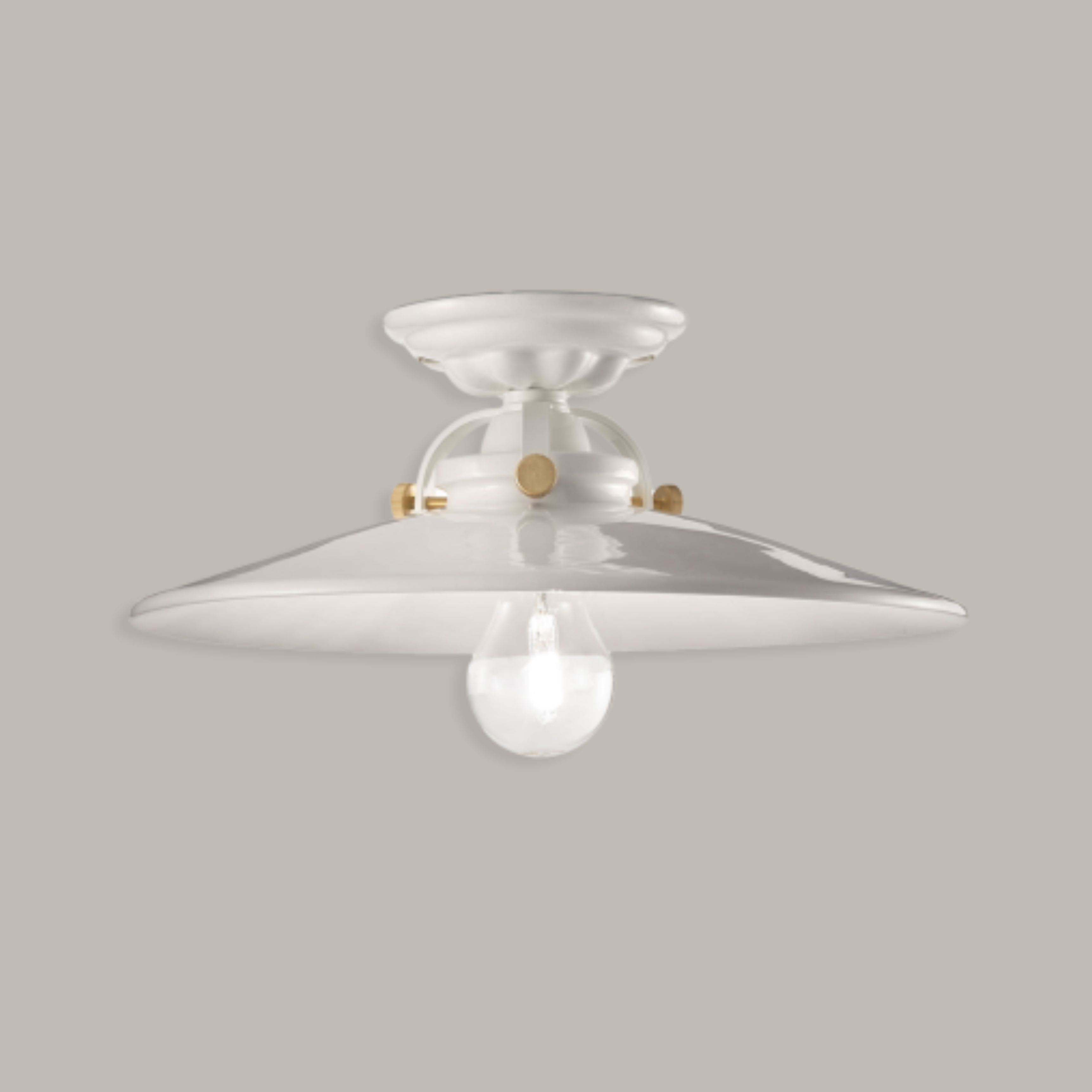 B&W's ceramic ceiling lamp captivates with its timeless simplicity and perfect balance of form. The white color combined with brass elements, glossy surfaces, and precise finishing creates a modern profile that simultaneously evokes classic elegance. The visible gilded screws are not hidden – on the contrary, they become a decorative detail that highlights both the function and character of the lamp.