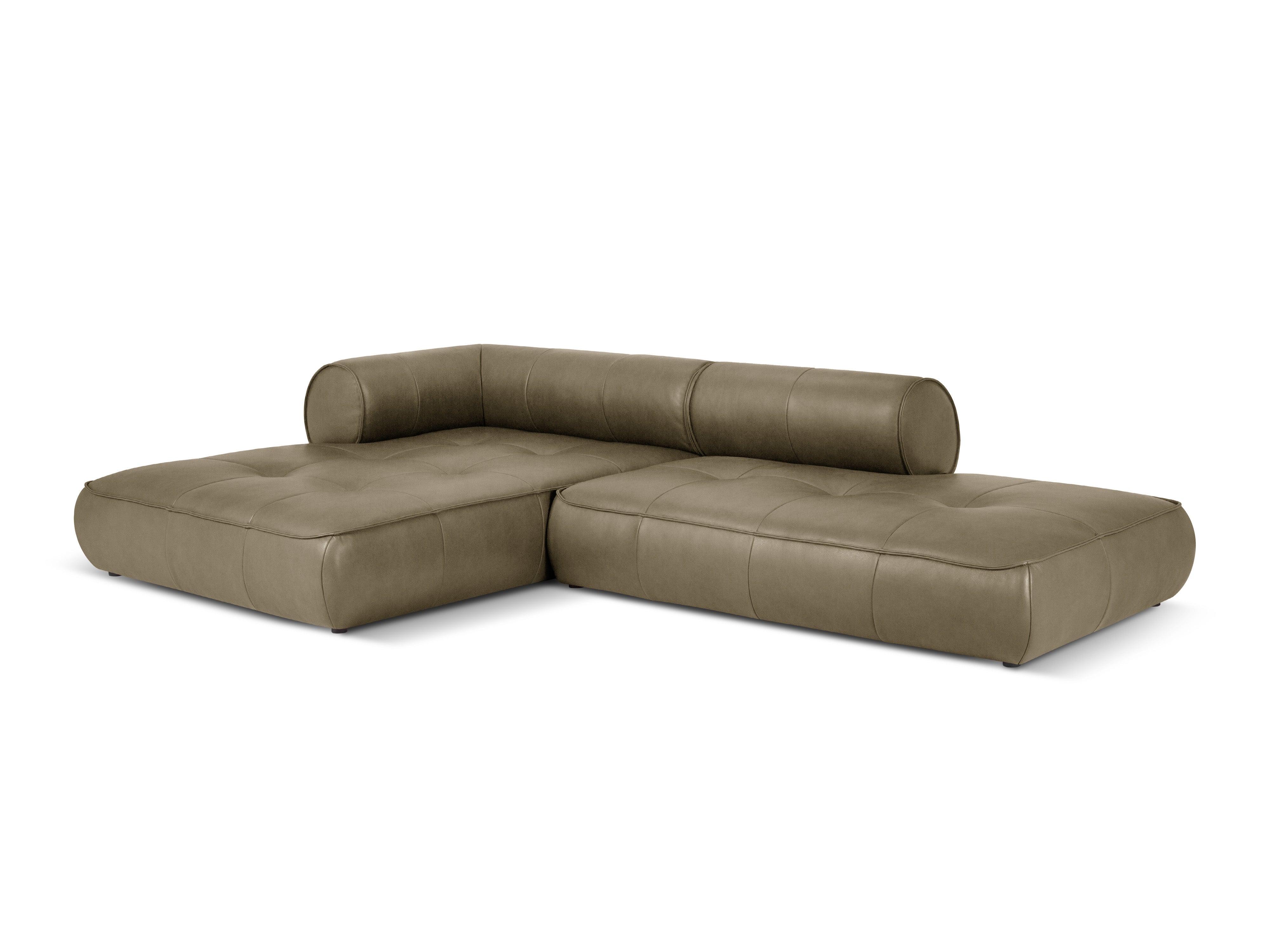 Leather corner sofa for four people Lily adds a touch of timeless elegance to any interior. Its unique form is a result of a modern approach to classic leather furniture. The rounded edges of the seats have an incredibly original shape, while the stylish backs provide the right comfort for relaxation.