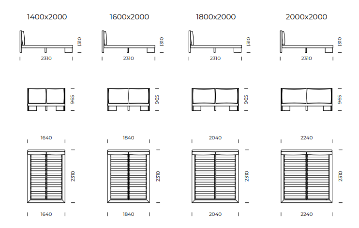 The Manduria bed is a harmonious blend of minimalist form, elegance, and user comfort. The sleek headboard, complemented by two soft pillows, adds lightness to the design while providing comfortable support for reading or relaxing. The pillows are filled with resilient, hypoallergenic eco-down, making this model suitable for those sensitive to allergens.