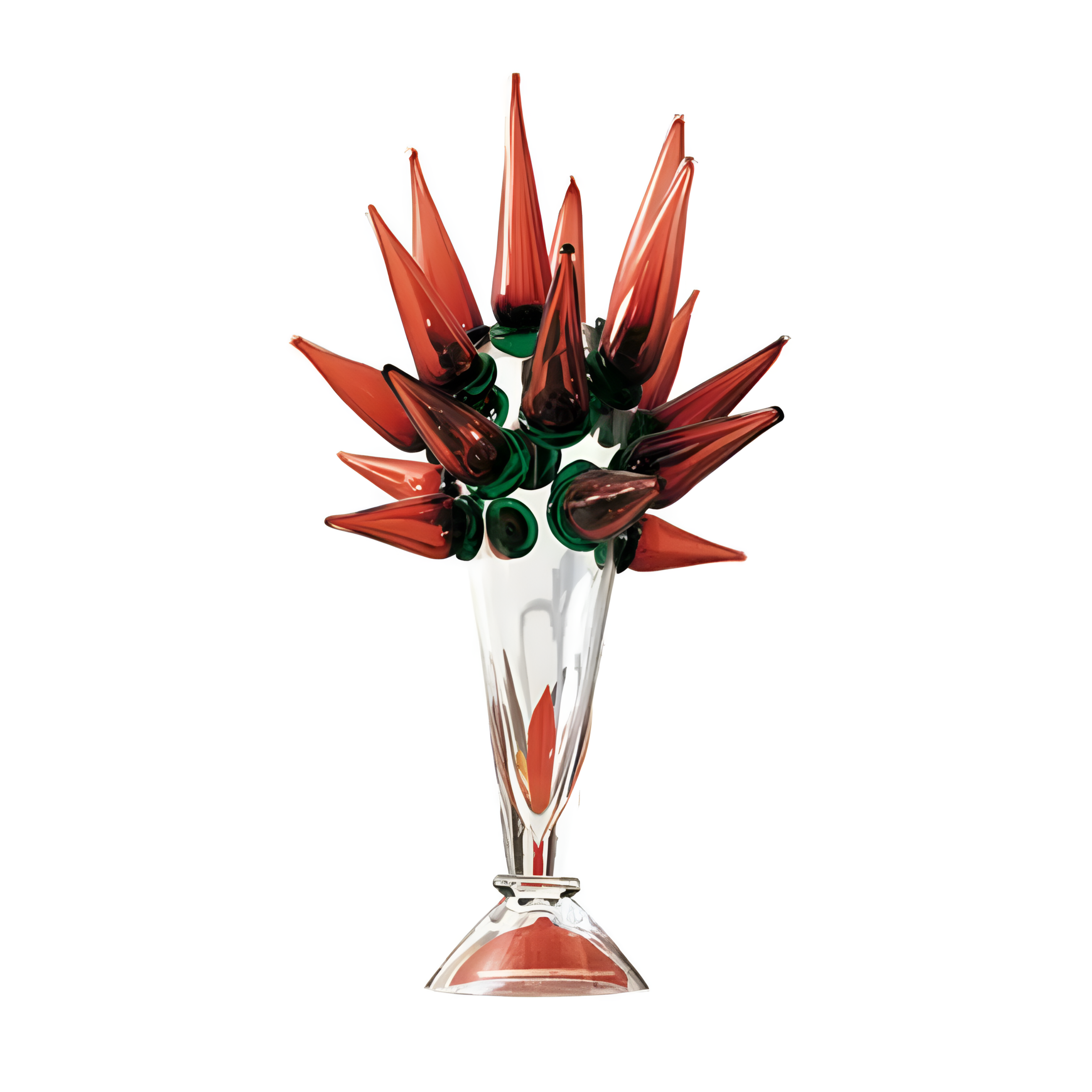 Vase Maria Pia is a spectacular example of the fancy imagination of Borek Sipeka, who was famous for combining bold forms with rich colors. This unusual vase Made of transparent glass, it attracts attention with intense, red and green decorations in the form of spiky cones surrounding the upper part of the vessel.