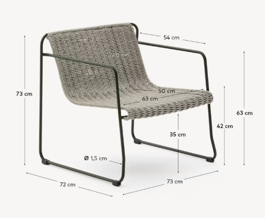 Design chair It was made of galvanized steel, which ensures high resistance to rust and corrosion, as well as durability even in demanding weather conditions. The seat and back, created from a hand -woven UV -resistant rope, guarantee comfort and subtle, openwork aesthetics.