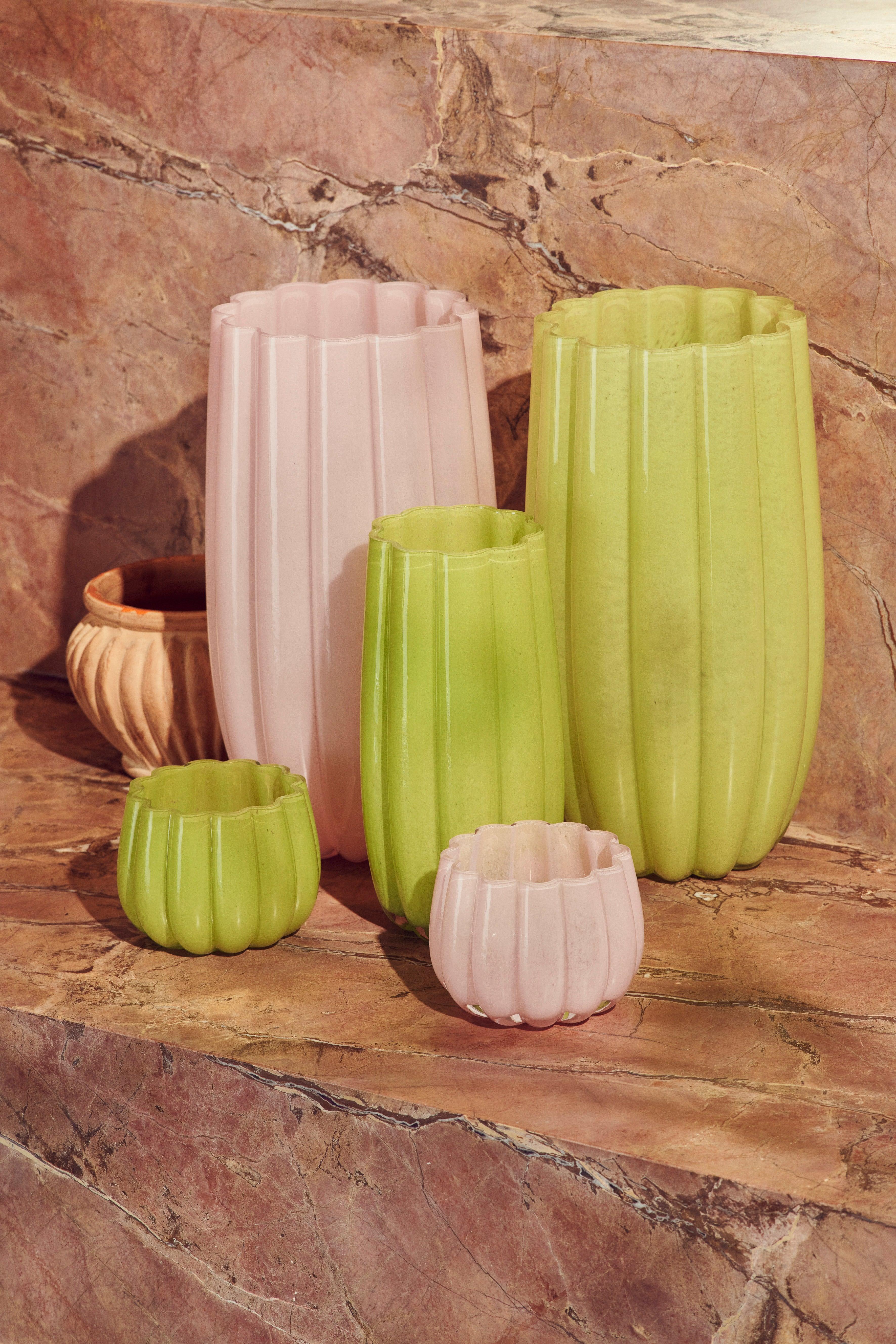 Light pink candle holder Melon is not only a practical element of equipment, but also an expression of artistic elegance. Its pink color and a unique shape will make it become the focal decorative point in your interior, raising his spirits and adding charm to every room. Let the melon candlestick make each day special and magical.