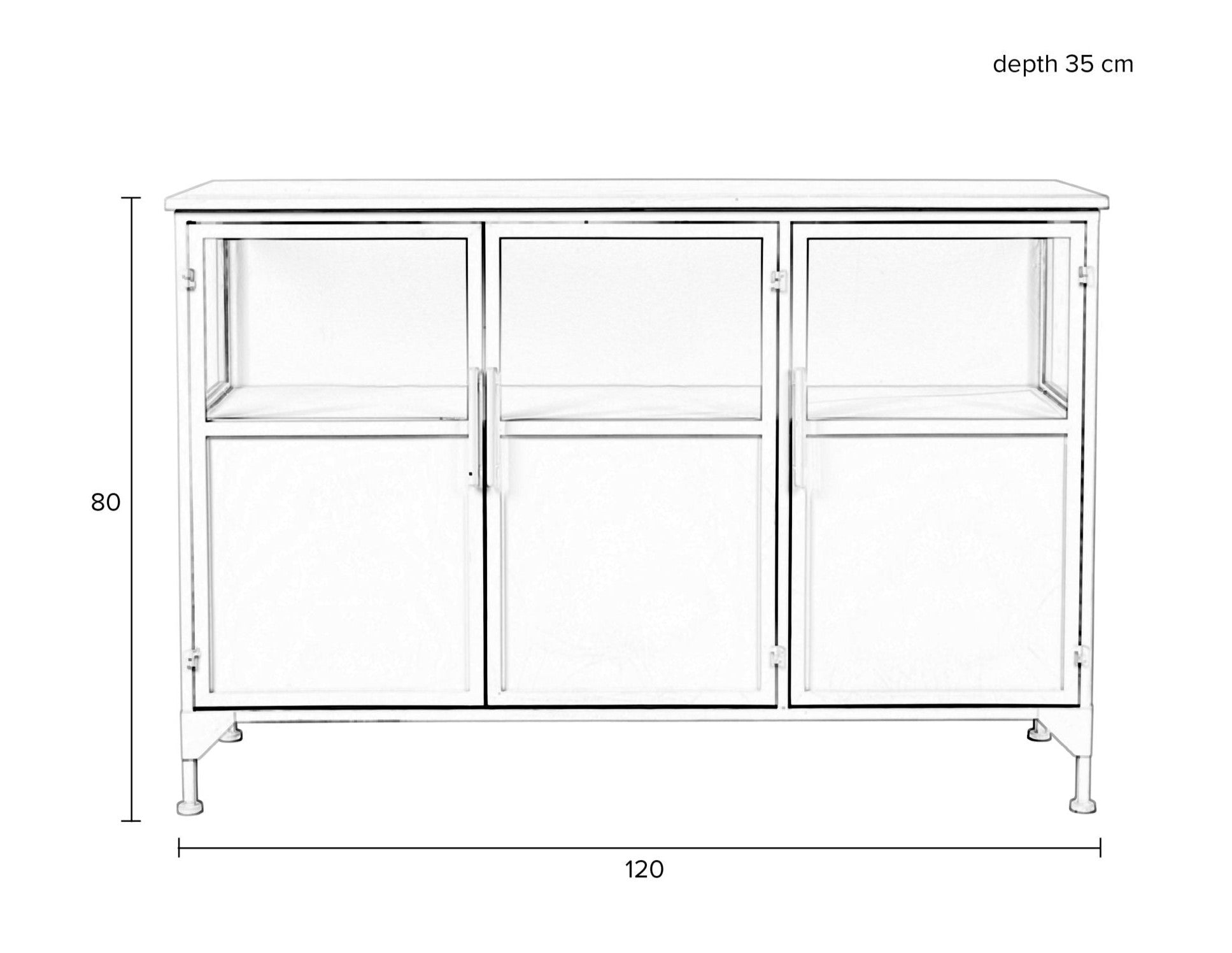 The style and functionality combine in elegant dresser Miya. Made of iron and powder painted white, the chest of drawers presents a modern design, perfectly matching various interior arrangements. Transparent windows made of tempered glass add lightness and make the chest of drawers become an effective decorative element in every room. Dresser Miya is the perfect choice for those who value elegance and functionality in interior design.