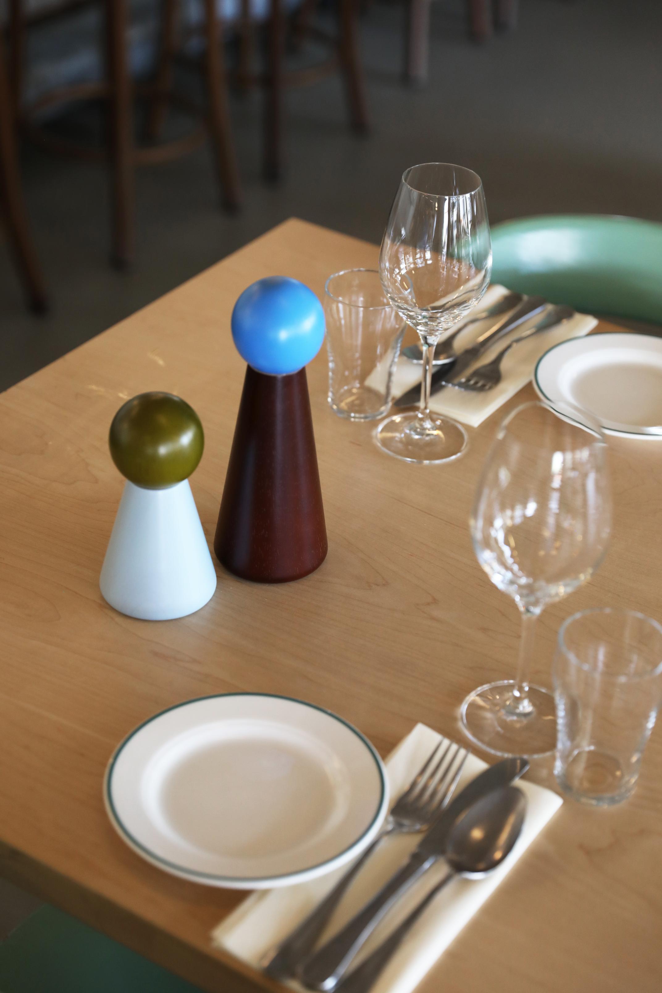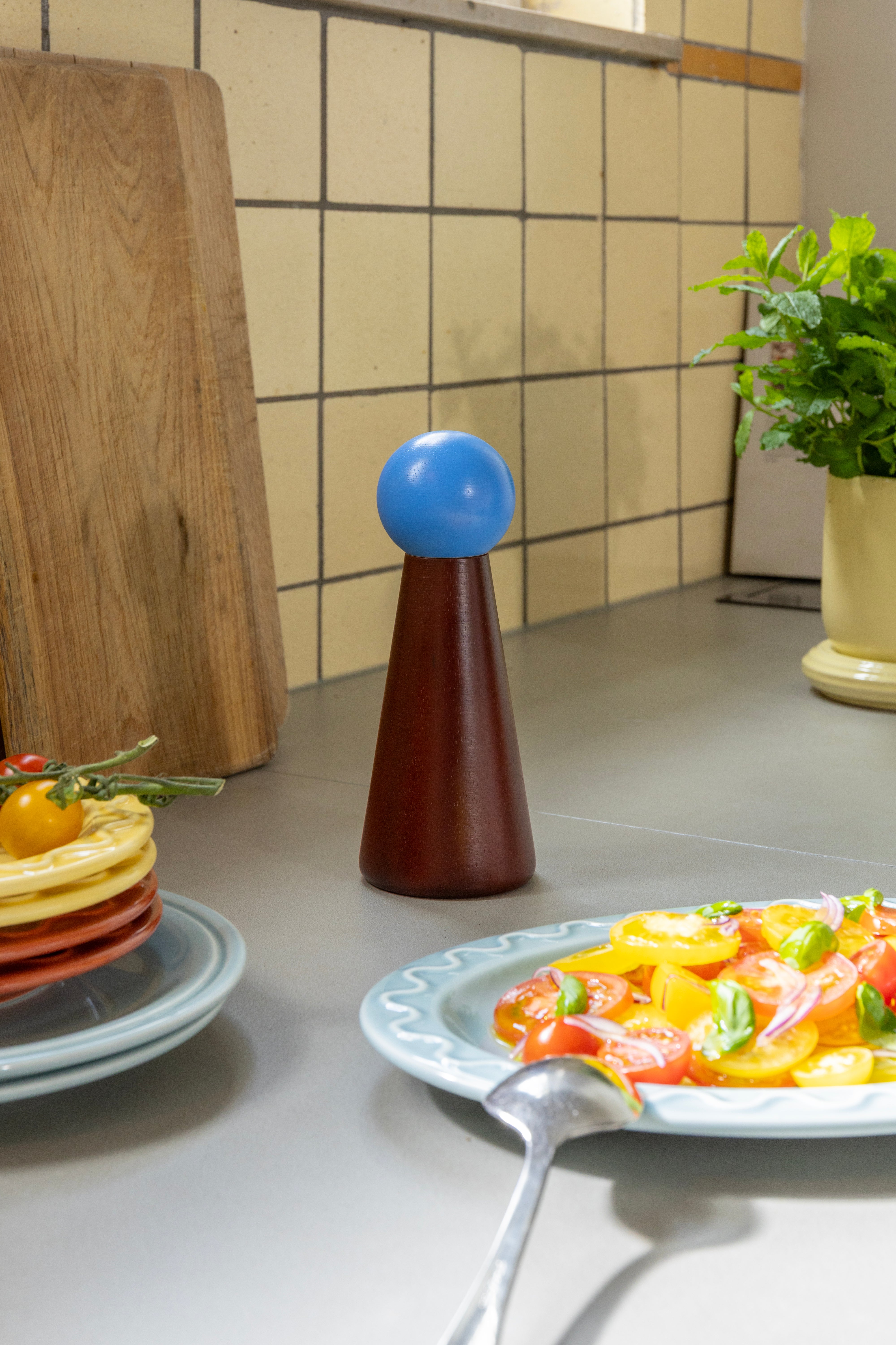 The Halma Salt and Pepper Mill combines functionality with a playful yet elegant design. Inspired by classic game pieces, this mill brings color, lightness, and a unique style to your kitchen. Its harmonious color palette and visible wood grain make the mill not just a practical tool, but also a decorative accent on your countertop or table.