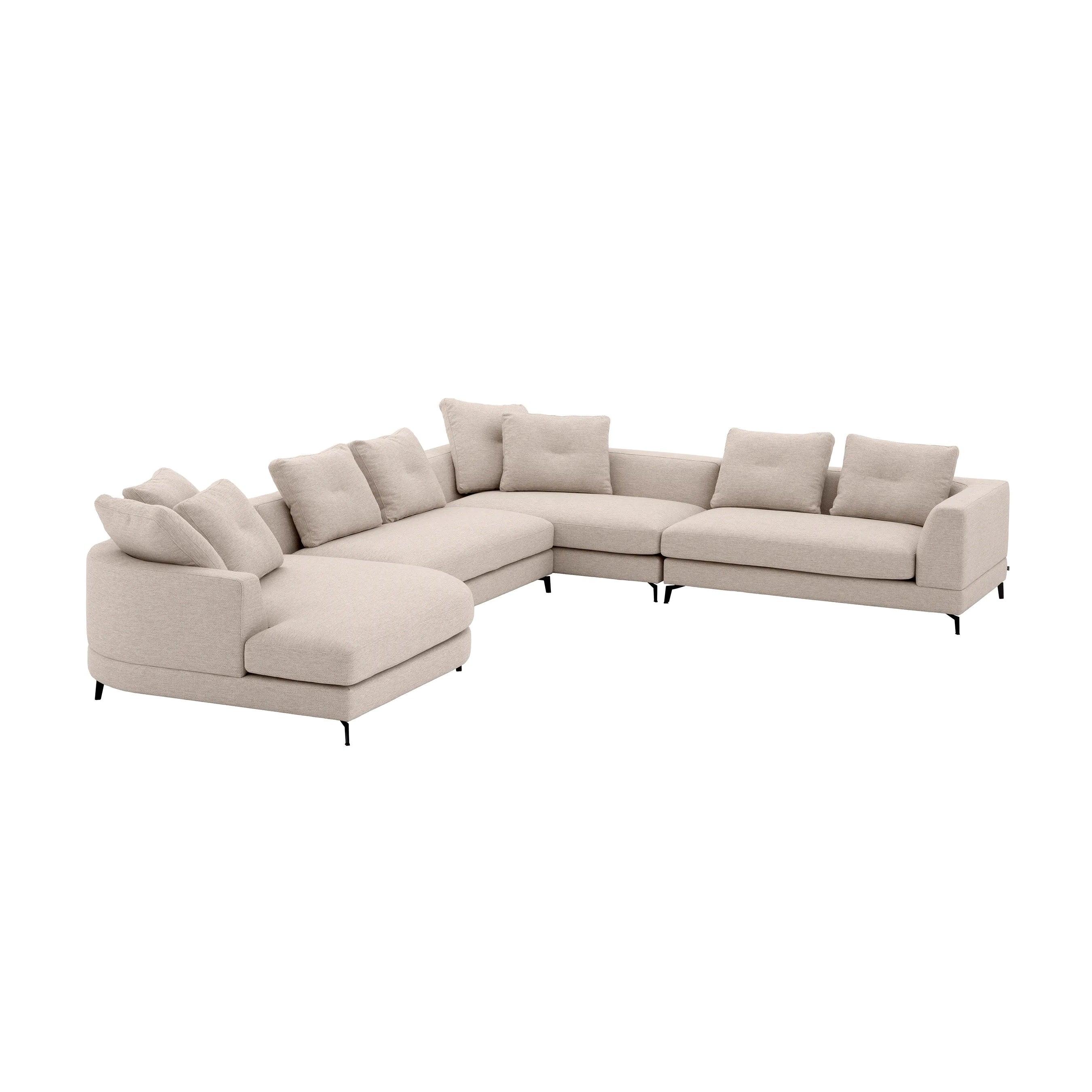 U-shaped Corner Sofa Moderno is the essence of modern luxury. Its elegant silhouette, black legs, and sand-colored upholstery Aveiro create a harmonious and aesthetic ensemble that will enliven any interior.