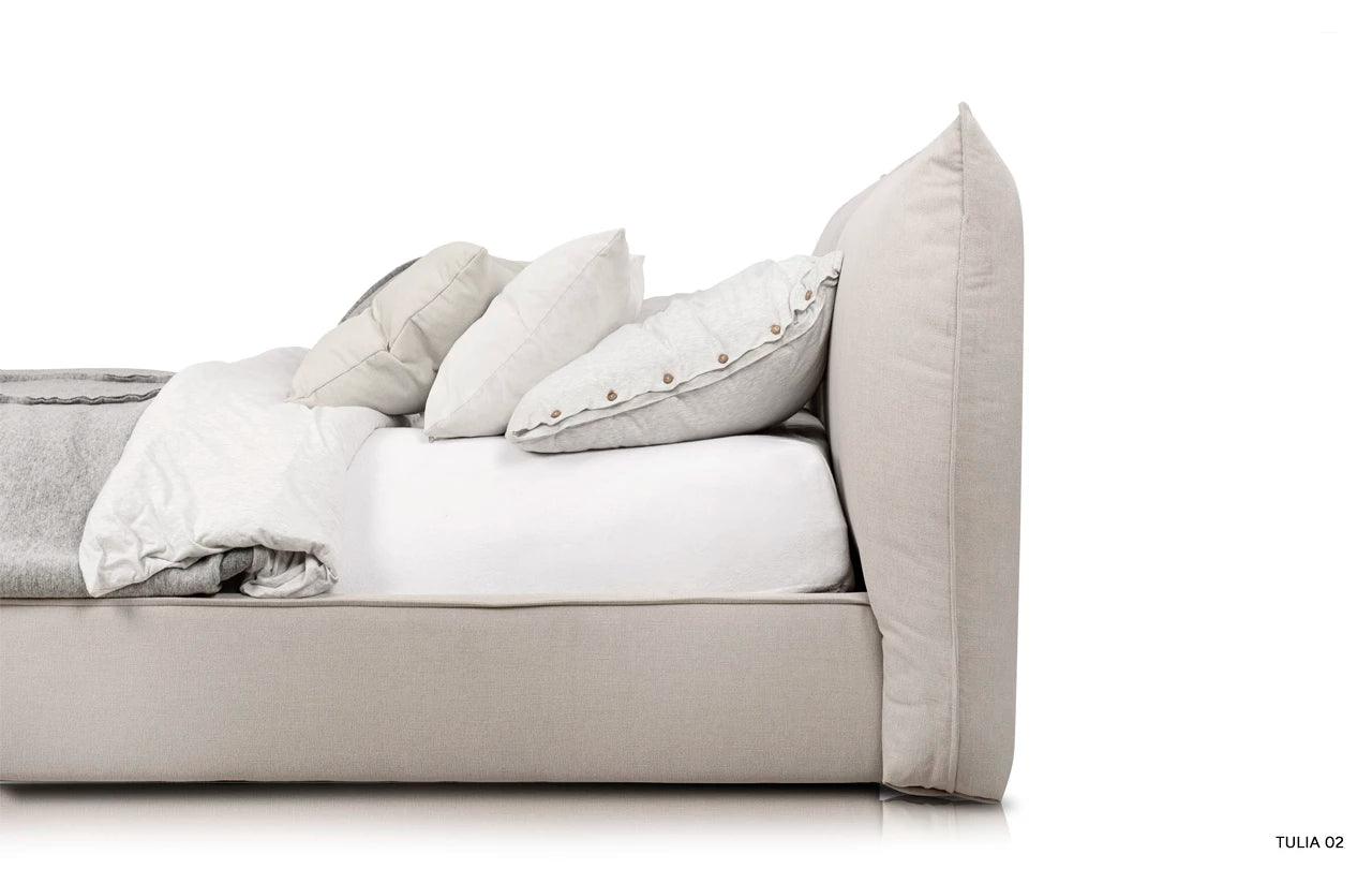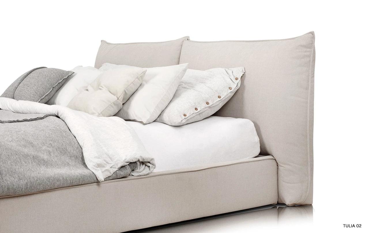 Beige bed Molia is a symphony of convenience and functionality, where a wide headboard includes a mattress, providing not only excellent support for the body, but also exceptional sleep comfort. The softness of upholstery and the delicacy of fabrics available in the Rosanero offer emphasize the sophisticated character of this bed, making it not only a piece of furniture, but a real work of art.