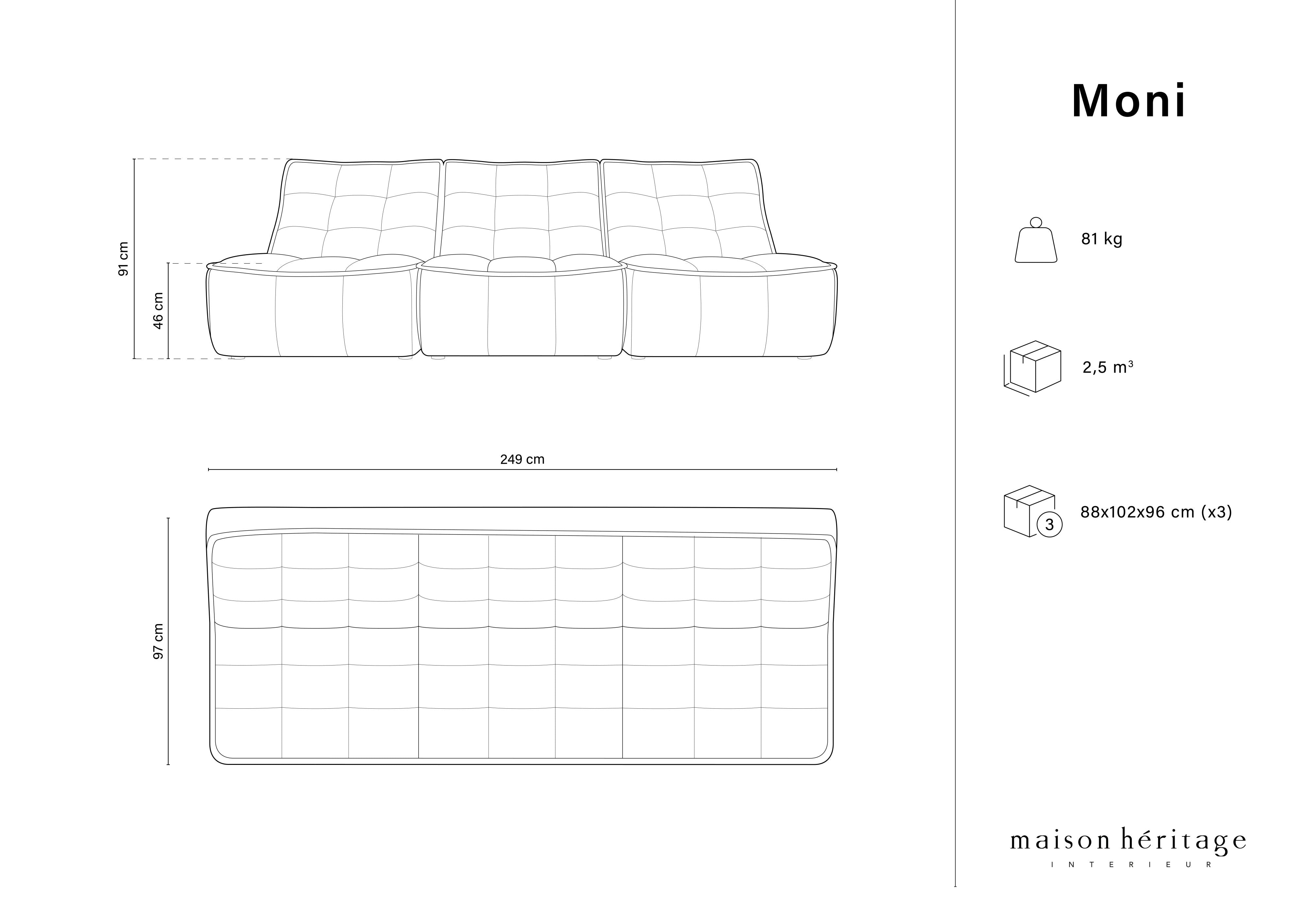 Sofa for three people Moni defines functionality and comfort combined with modern design. The stylish tufting and original shape will work perfectly in both an elegant living room and a contemporary office. The line of the seat and backrest is curved and features a gently contoured indentation, offering extraordinary comfort during use.