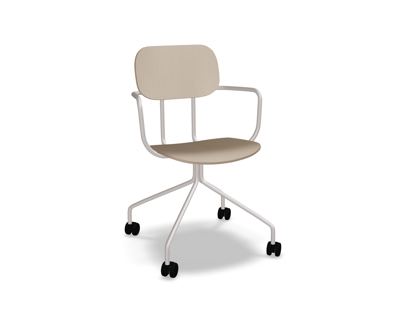 Office chair New School, inspired by the classic form of a school chair, offers many configurations ideal for different office zones. The version with a four -pointed base on wheels increases functionality, making it easier to move at the desk and adjust the position to current needs. The possibility of personalizing finishes and optional armrests makes this chair a versatile solution that will be perfect for both offices and educational and workshops.
