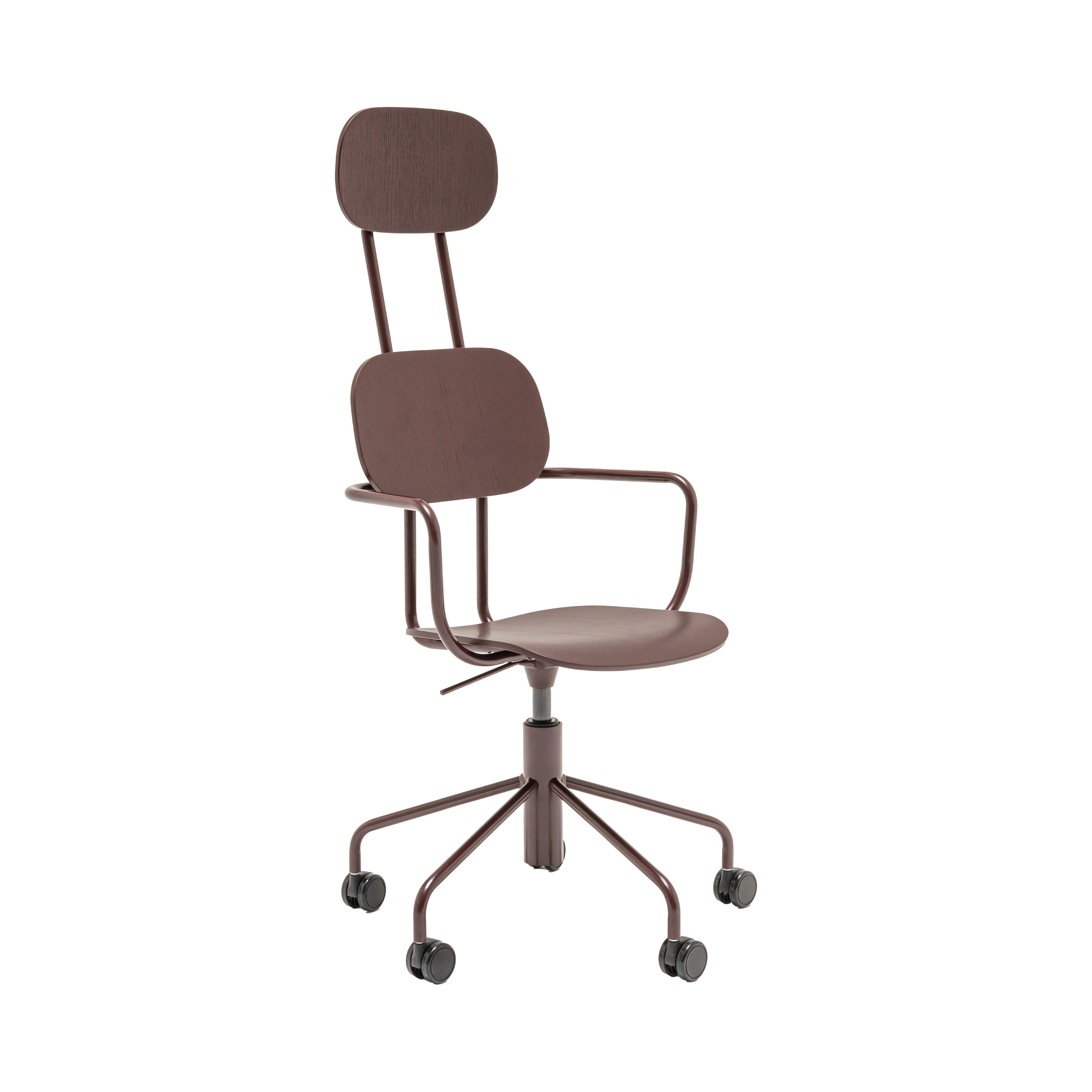 Office chair with headrest New school with adjustable height provides comfortable support for the user's whole back. Equipped with a cylinder and wheels, it enables full freedom of movement, which makes them an ideal choice for offices and educational facilities. A durable seat and plywood support are easy to care for, so they will work in places with intensive use.