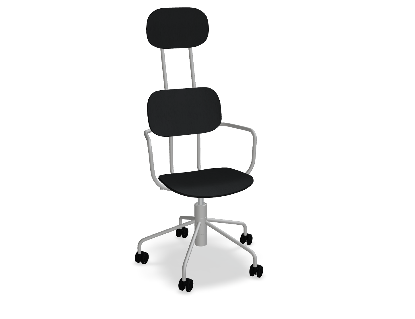 Office chair with headrest New school with adjustable height provides comfortable support for the user's whole back. Equipped with a cylinder and wheels, it enables full freedom of movement, which makes them an ideal choice for offices and educational facilities. A durable seat and plywood support are easy to care for, so they will work in places with intensive use.