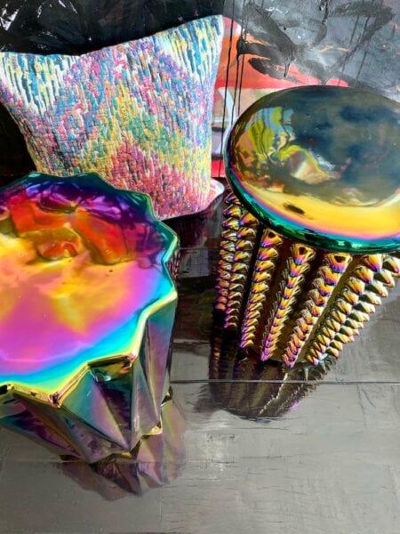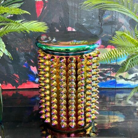 stool Oily Spike is an extraordinary accessory designed by Roderick Vos. The play of colors and the distinctive shade of gasoline found in a puddle of water will transport you to a completely different world full of whimsical shapes and unconventional design.