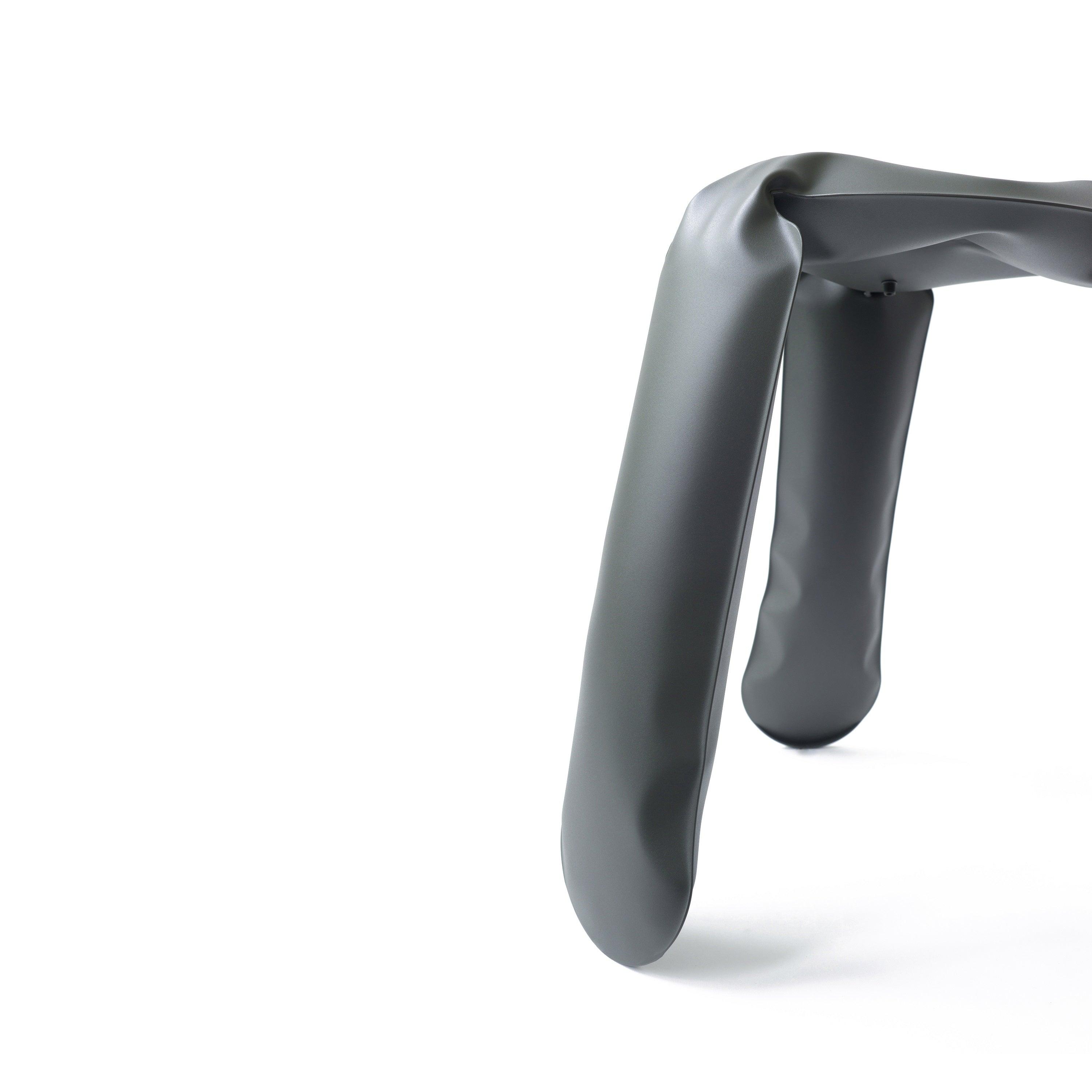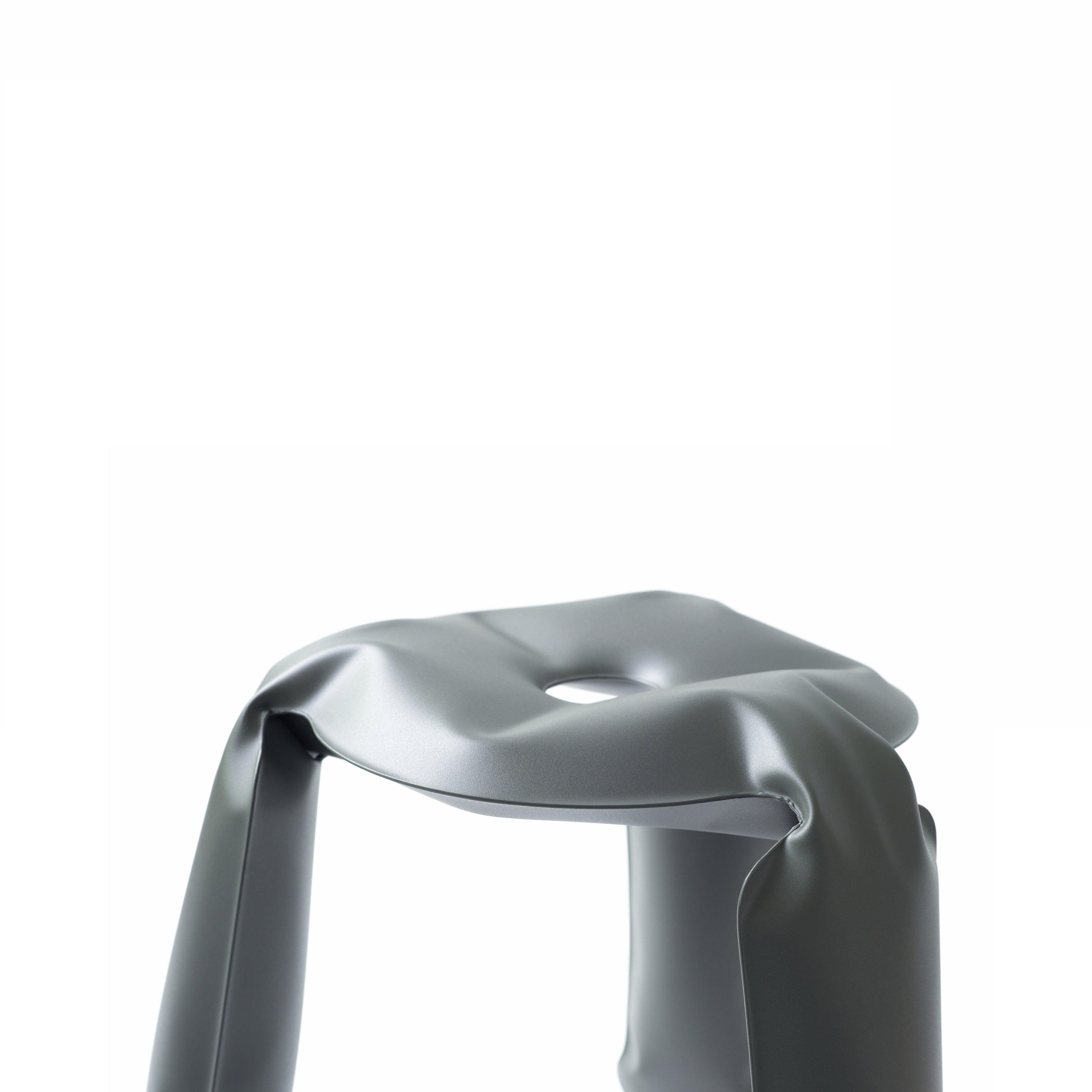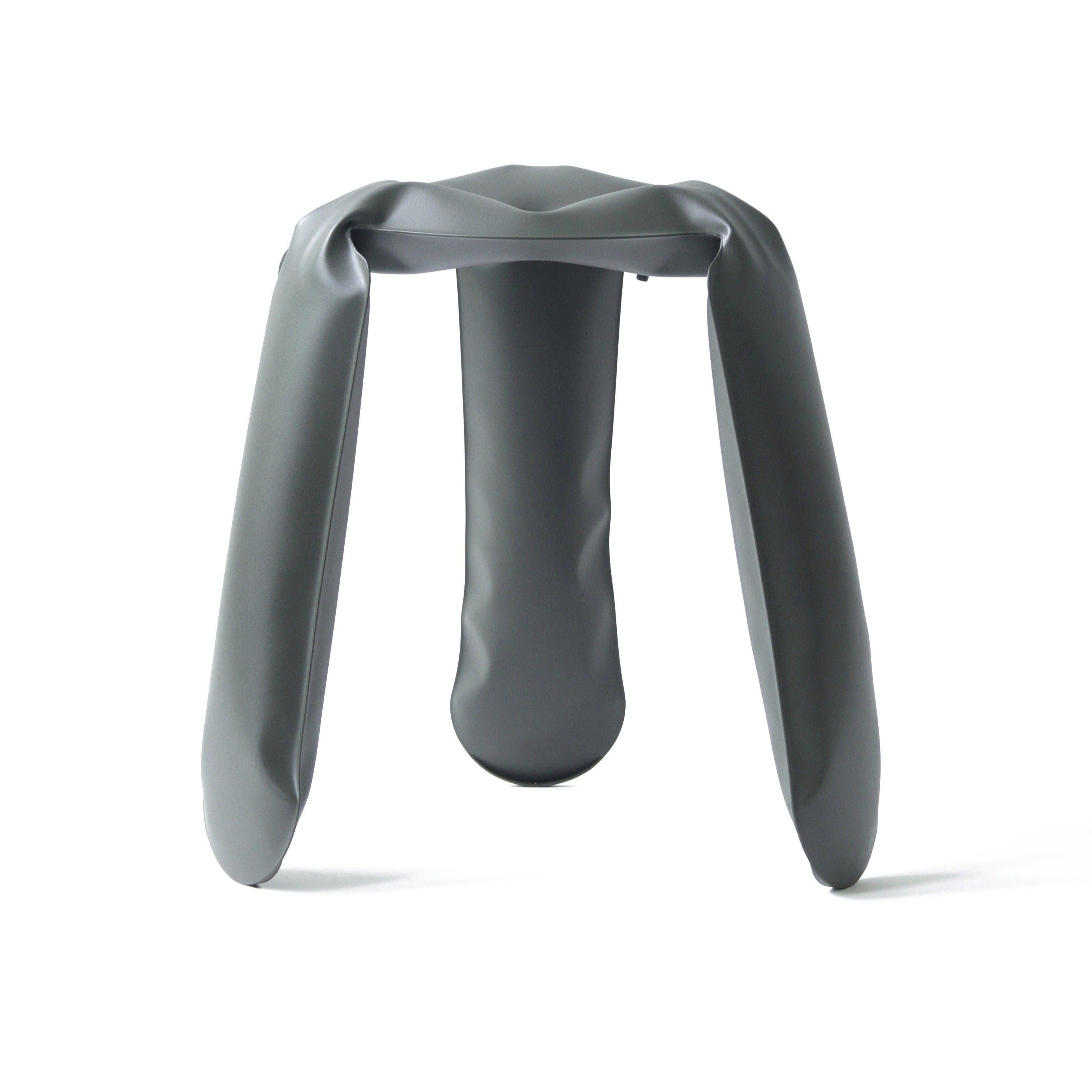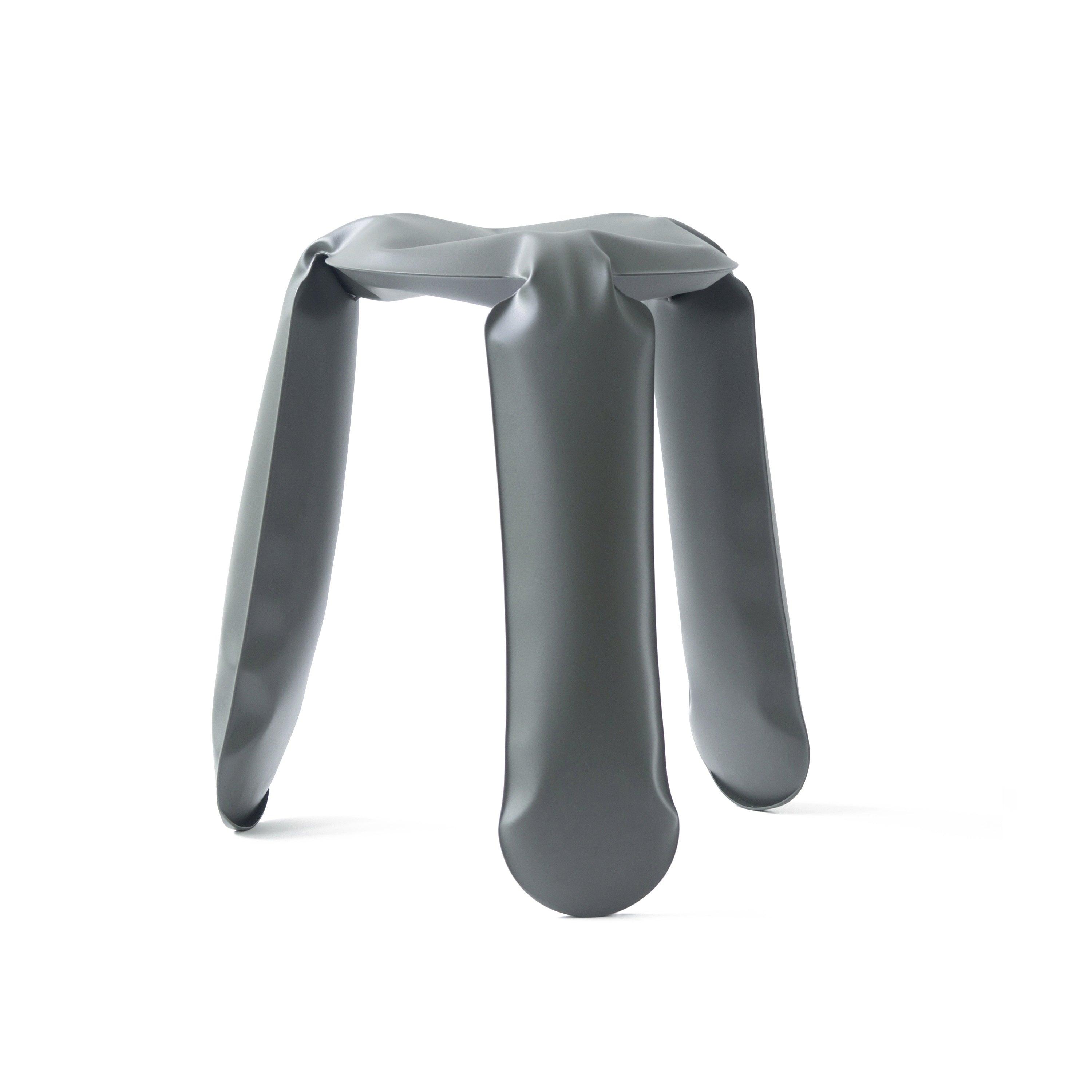 Plopp Stool in matte gray is a true hallmark of Zieta Studio and simultaneously a symbol of Oskar Zięta's research into the properties and possibilities of metal. This extraordinary stool, also known as the "Polish folk object inflated with air," is a perfect example of how artistic aspects of design can be revealed through highly advanced engineering forms.