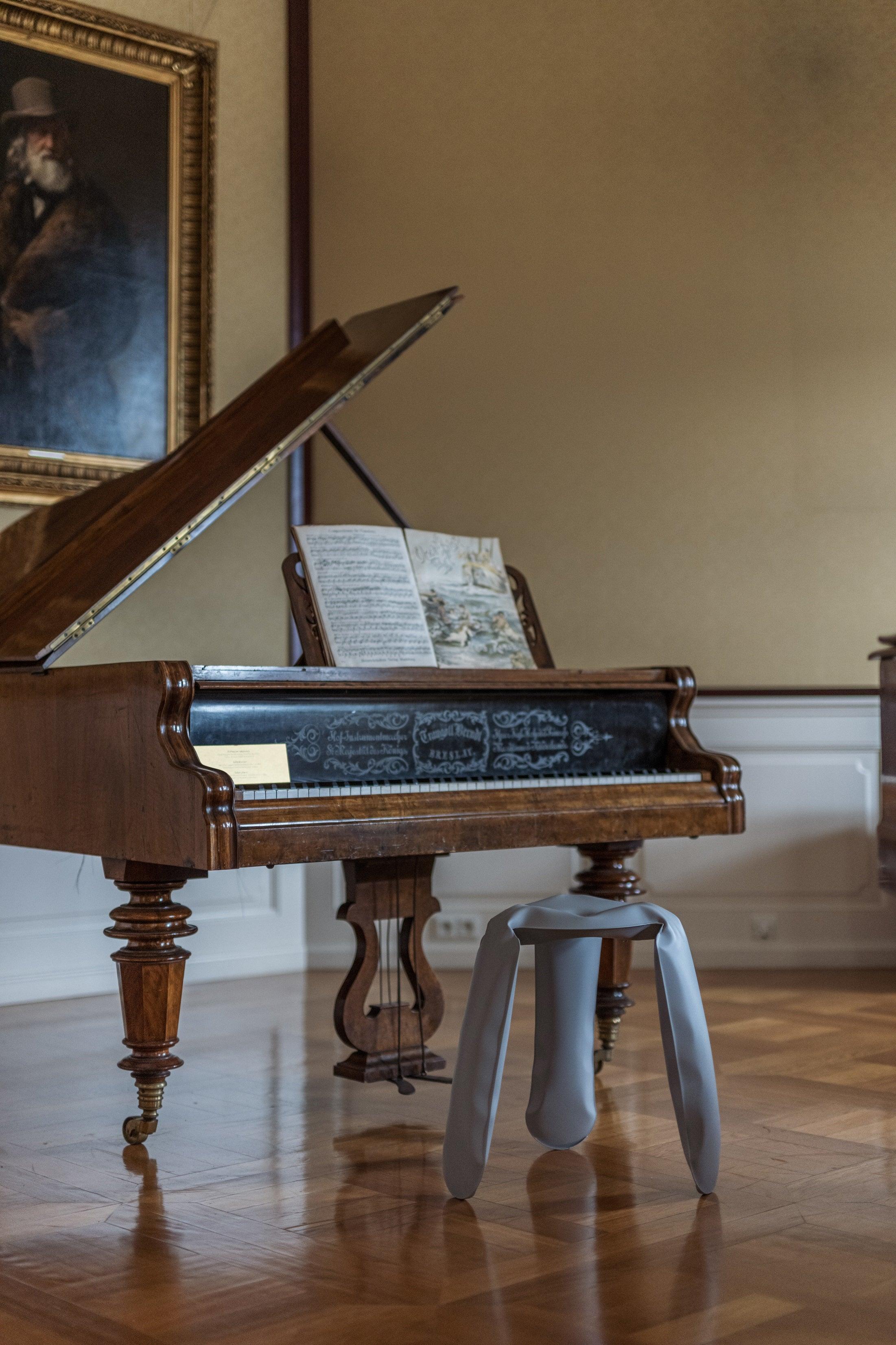 Plopp is not just a piece of furniture, but also a manifestation of FiDU technology (Freie Innendruck Umformung) and the process of "controlled loss of control." The stool is created from two ultra-thin sheets of steel that are welded together around the edges and then inflated under high pressure. This process transforms the flat 2.5D shape into a three-dimensional object, giving the stool extraordinary shapes and a dynamic appearance.