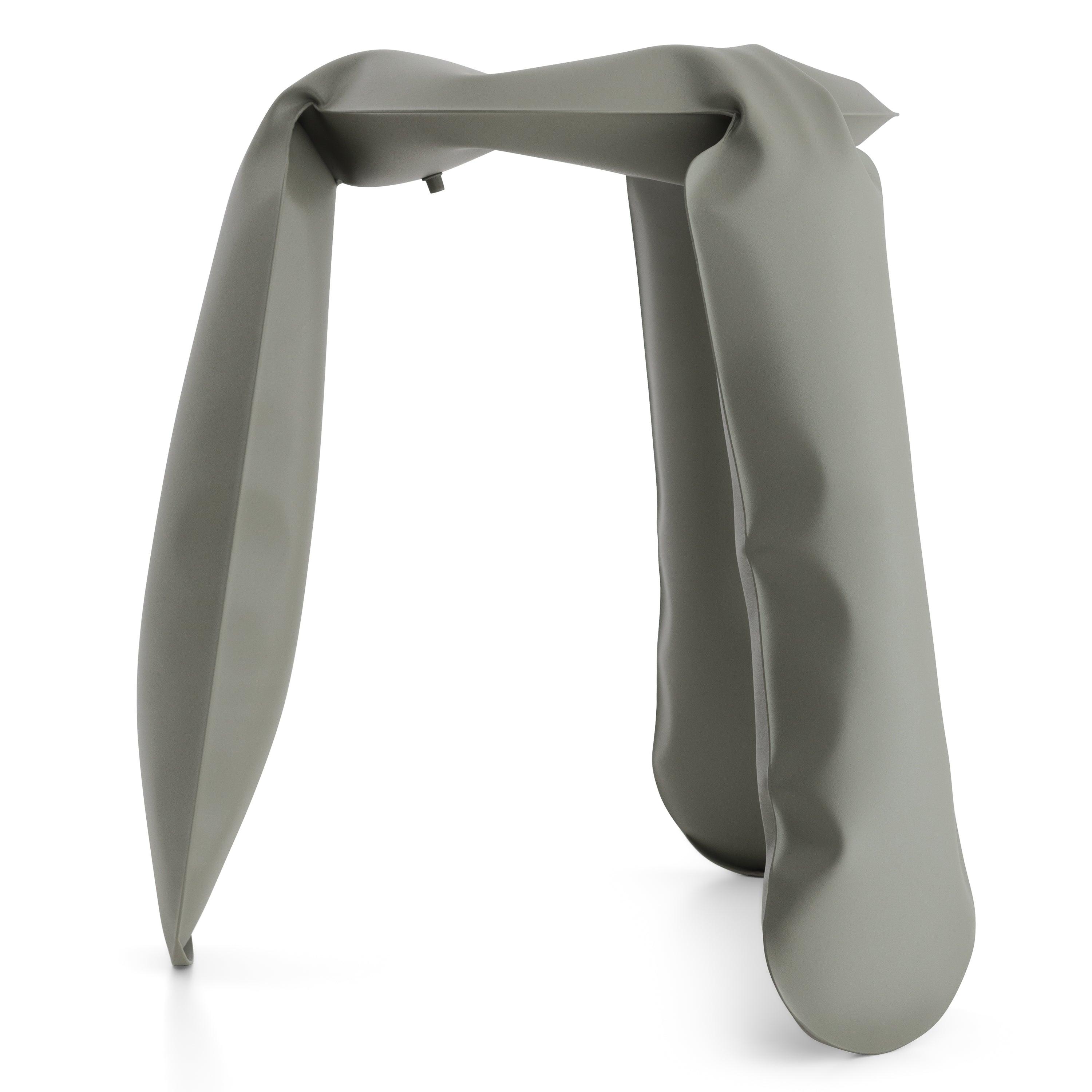 Plopp Stool in the color of gray, matte moss is a true hallmark of Zieta Studio and simultaneously a symbol of Oskar Zięta's research on the properties and possibilities of metal. This extraordinary stool, also known as the "Polish folk object inflated with air," is a perfect example of how artistic aspects of design can be revealed through highly advanced engineering forms.