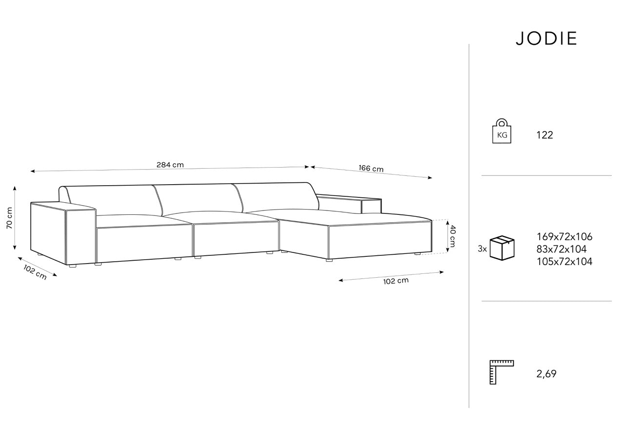 The seat of the sofa is made of structural fabric, which guarantees not only comfort but also durability and resistance to damage. The Jodie sofa is also very practical - it can be ordered with a left or right side option, depending on your needs.