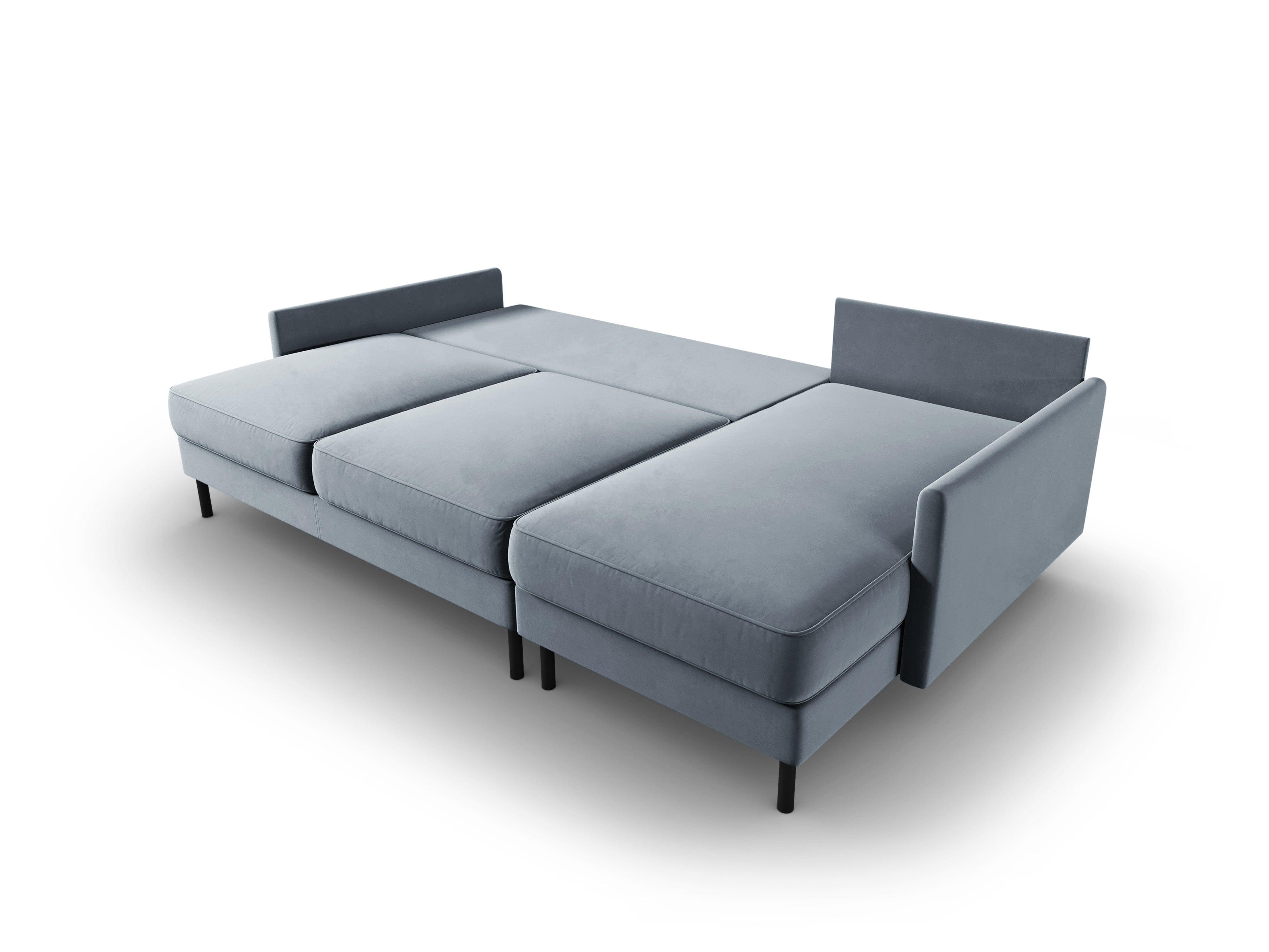 Corner Sofa Scott is a five-seater sofa bed, perfect for families and those looking for a comfortable and stylish piece of furniture for their home. The corner sofa is available in elegant colors and features black metal legs that add a modern touch. Customers have the option to choose the side of the sofa bed, allowing them to customize it to their needs and room layout.