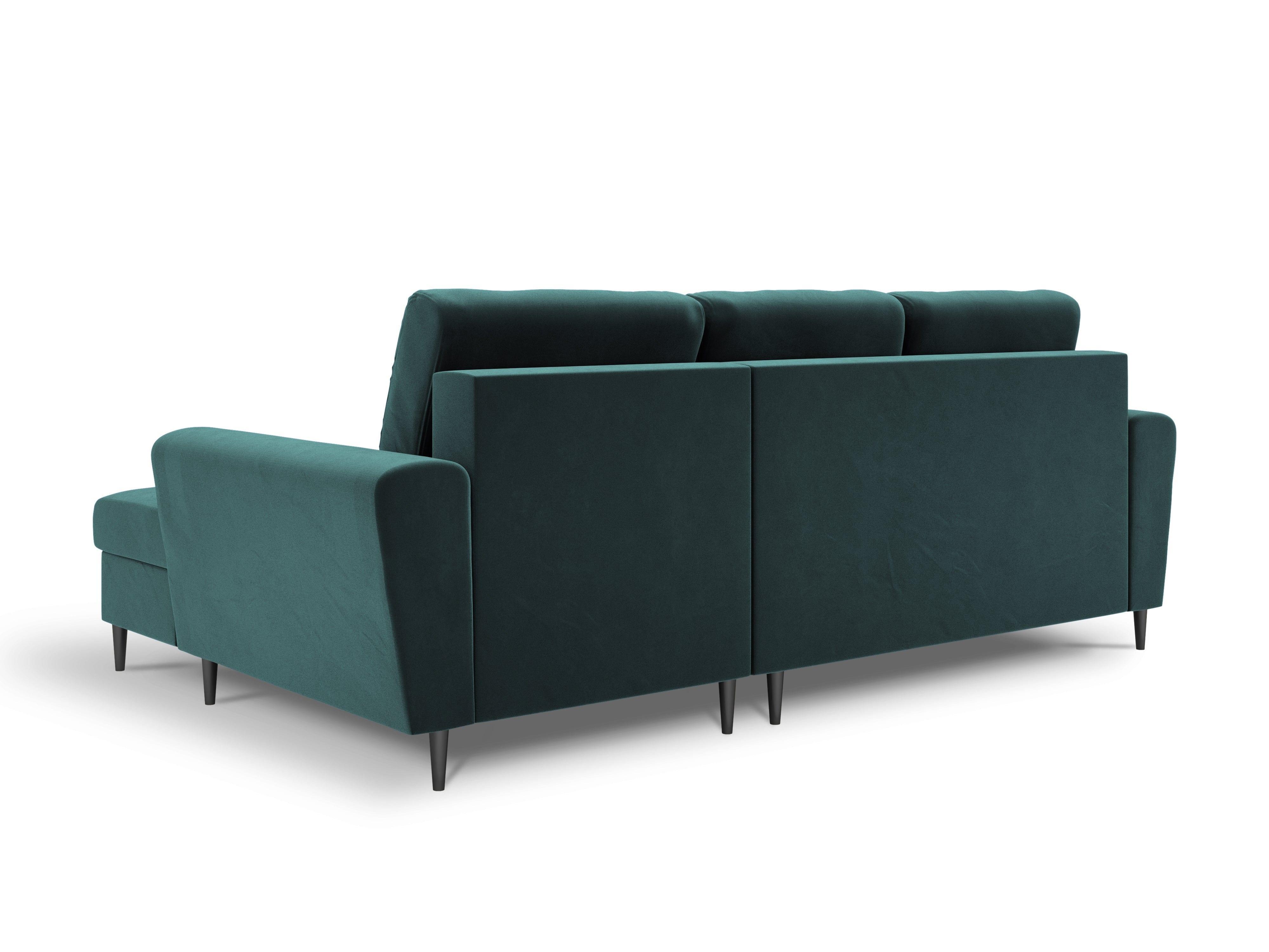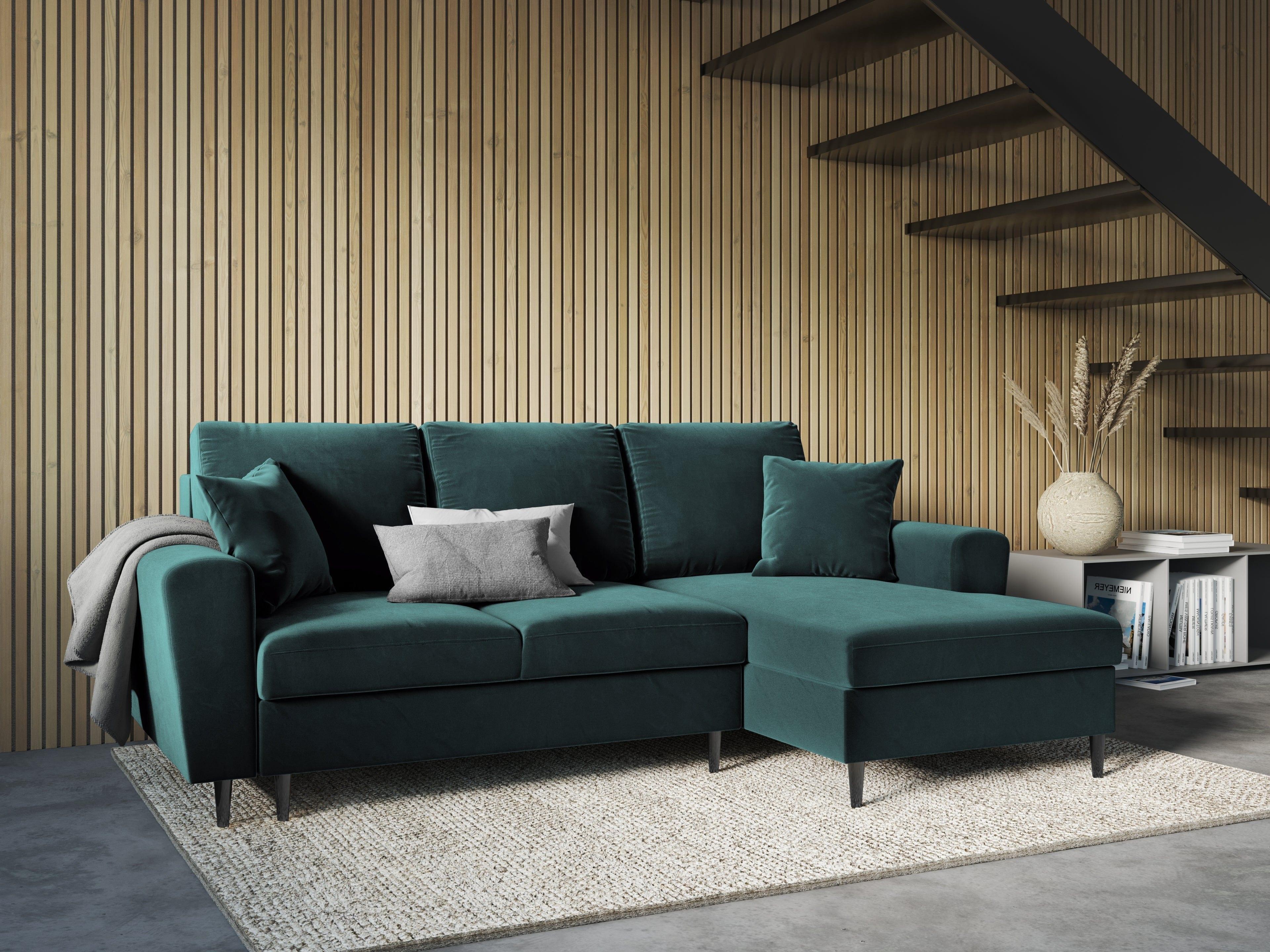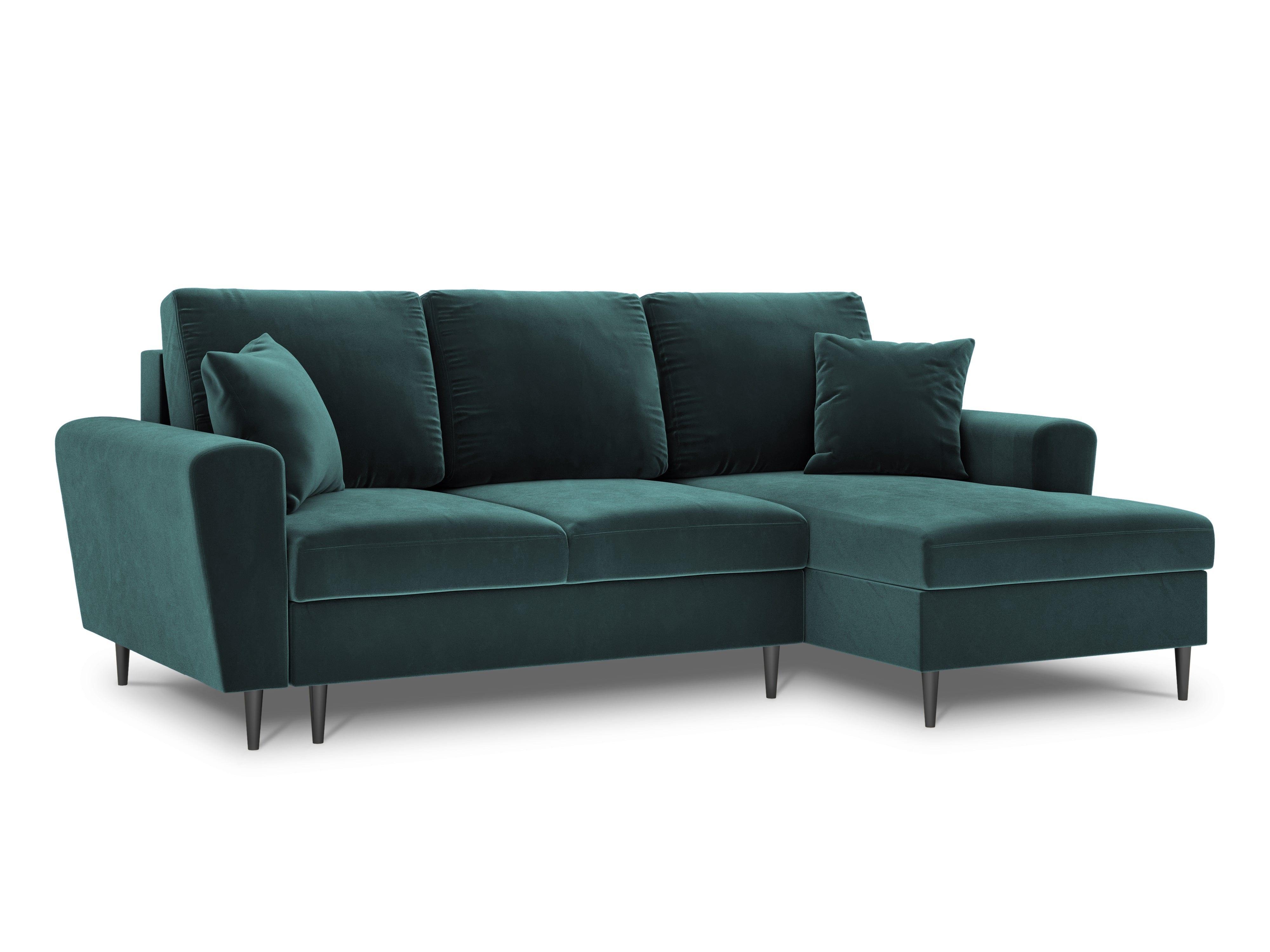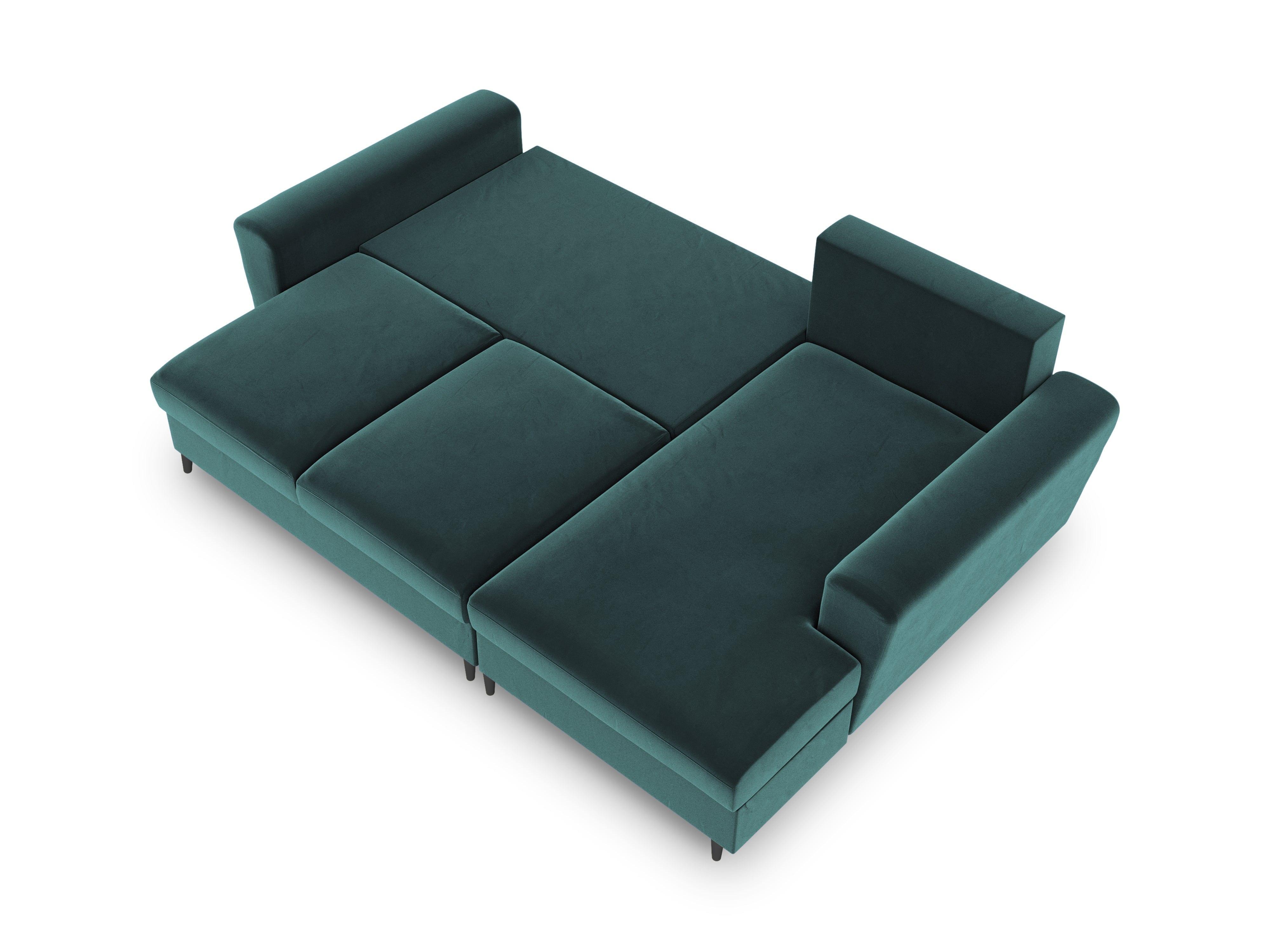 Narożnik prawostronny aksamitny z funkcją spania KYOTO petrol z czarną podstawą Cosmopolitan Design    Eye on Design