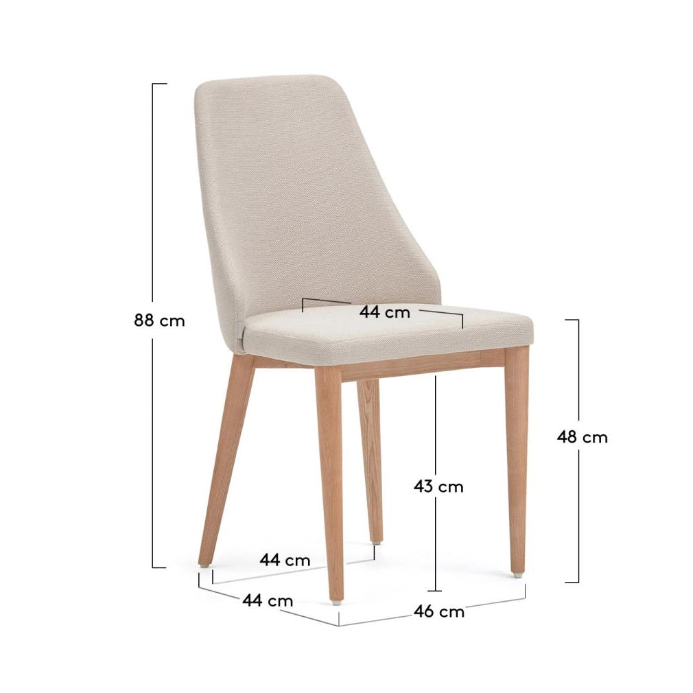 Beige chair Rosie, with easy-to-maintain chenille, is the choice for those who value both style and practicality. The ergonomic backrest, surrounding the lower back, not only provides comfort but also supports proper posture, making sitting a pleasure even for extended periods. The legs made of solid ash wood add natural charm to the chair while ensuring a sturdy construction. The internal structure is based on E0 low formaldehyde emission wood, which reflects the brand's care for the environment and your health.