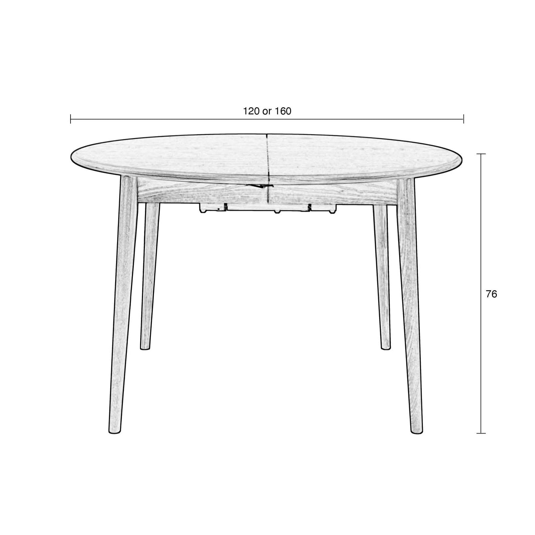 This oval table is spread out with 120x120 cm for a larger one, to 160x120cm.