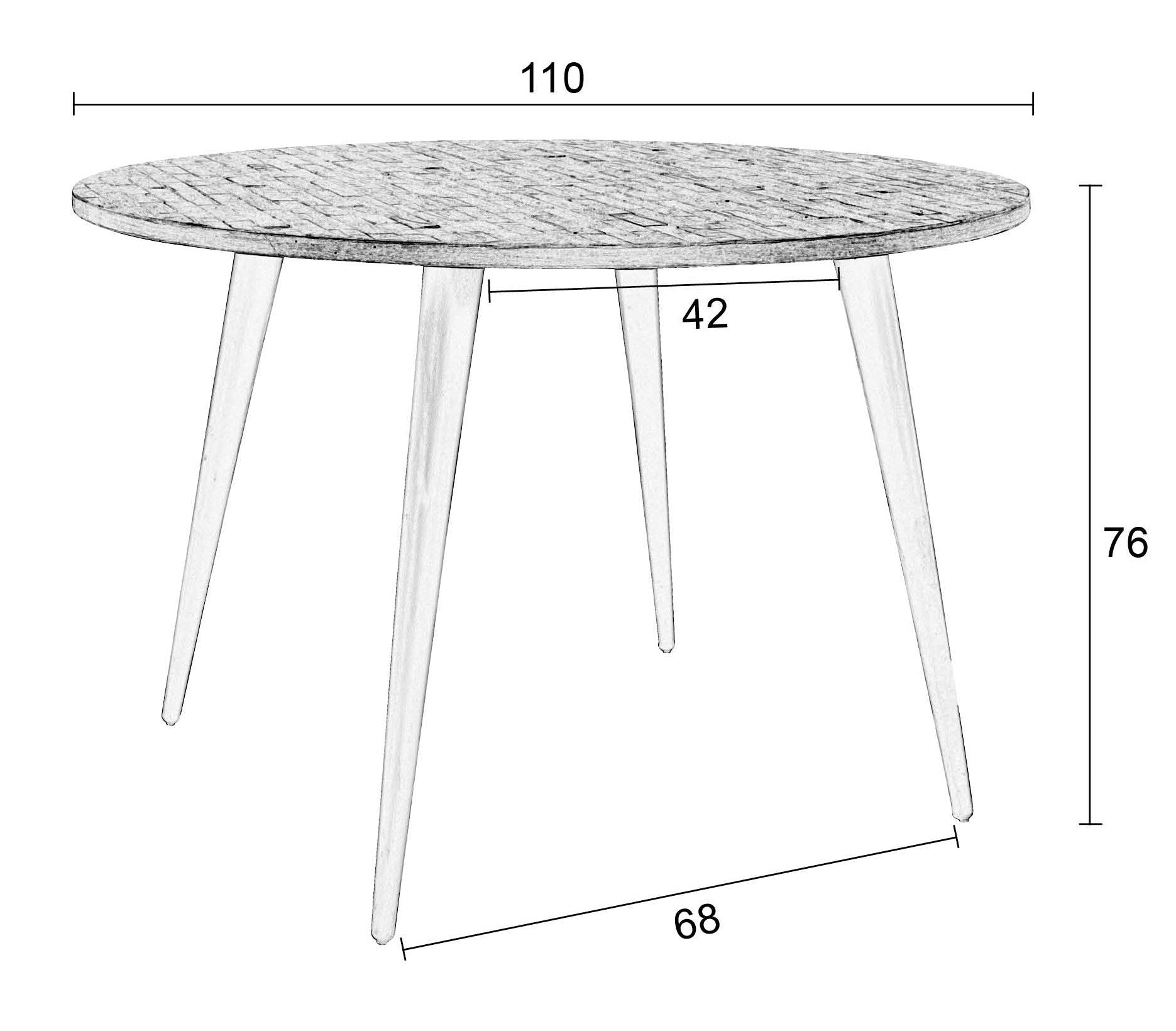 Table MO is an elegant piece of furniture for the kitchen, dining room and living room. It consists of a round countertop with a diameter of 110 cm and four pointed, straight legs, made of teak wood and steel. Its classic design will blend in with modern, classic and industrial arrangements, adding style and elegance to the interior. The MO table is practical and is an attractive decorative element, harmoniously fitting into any interior color.