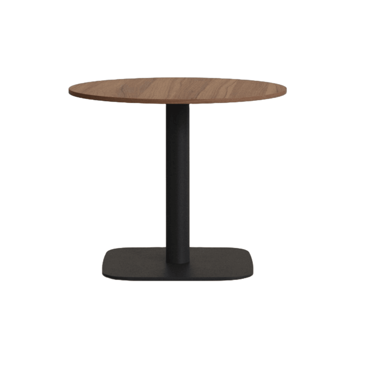 Round table Dina from a peanut finish is an elegant piece of furniture that adds a cozy charm to every room. Its round top made of melamine imitating the natural nut finish gives it a warm and sophisticated look. The leg of the Dina bar table has a square, metal base, painted black, which adds contrast and modernity.