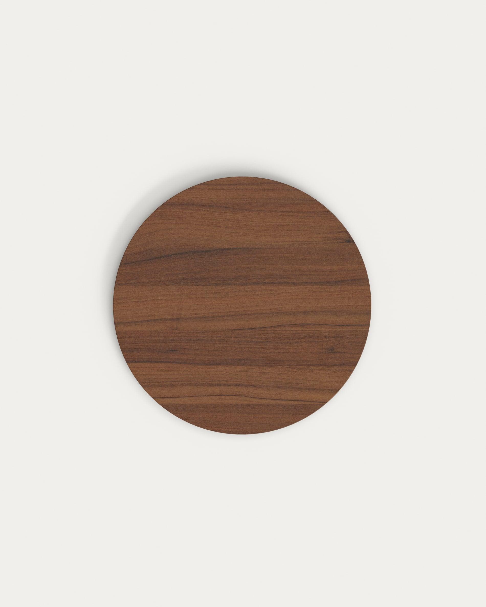 The combination of a nut top finish with a black metal base gives a Dina table a stylish look that suits both modern and classic interiors, adding a unique character to them.