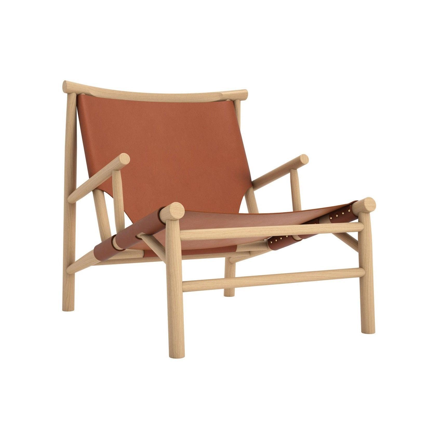 The Samurai Chair is a highly valued piece of furniture with a stick construction, popular in the 1950s, combining various sections of turned oak wood that provide seating comfort and geometry. The chair is beautifully complemented by a highly crafted section of round oak wood that connects to the back in an elegant form, enhancing the iconic silhouette. The seat is secured with brass rivets for maximum durability, while the backrest is attached using adjustable leather straps and brass buckles.