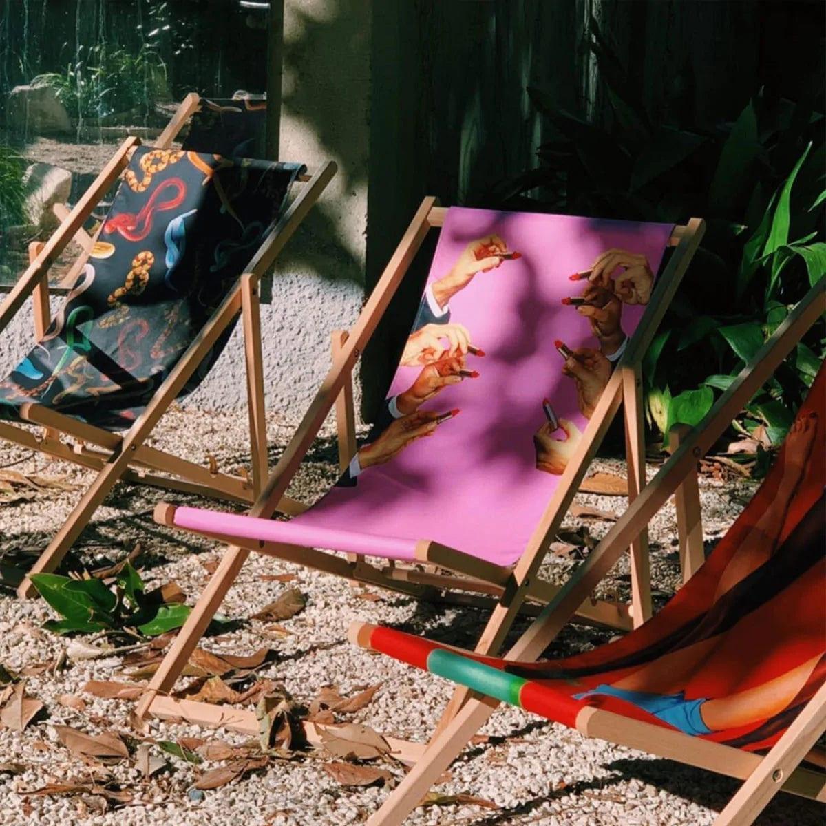 Designer sunbed Snakes from the Italian brand Seletti is a guarantee of constant holidays! Sit comfortably, take your favorite magazine and drink a drink as if nobody watched you. The sunbed is made of high quality beech wood and UV resistant material. It has a three -stage backrest adjustment.