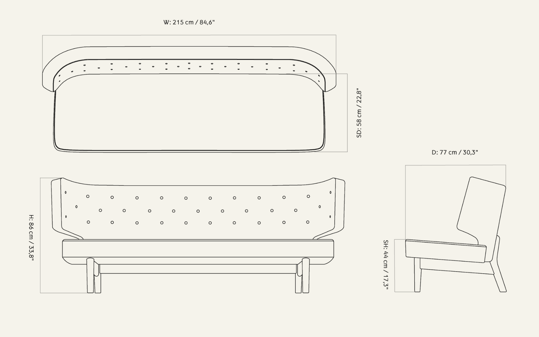 Instead of the conservative forms of the time, Lauritzen designed a sofa with a fluid, futuristic line. Its rounded shapes, open construction, and tufted backrest create a sense of lightness while offering exceptional comfort. With refined details and beauty visible from every angle, the Radiohus Sofa is best showcased freely in a space.