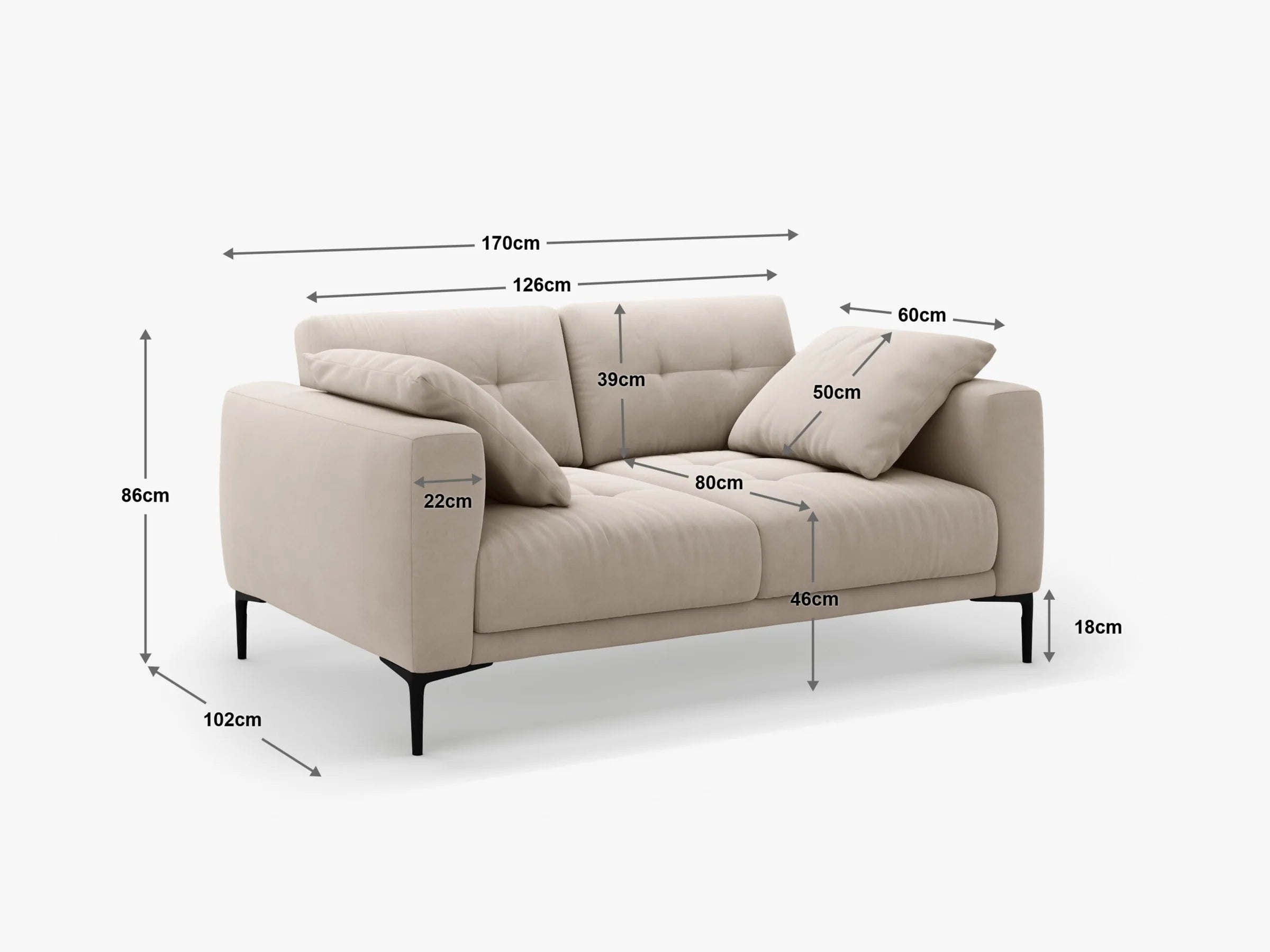 2-seater sofa Bemy is a blend of modern elegance and everyday comfort. Its light, slender silhouette supported by high metal legs adds harmony to the interior while making the sofa appear exceptionally light visually. It is the perfect choice for a living room, home office, or smaller spaces where both design and comfort matter.