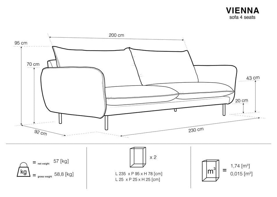 Velvet sofa for 4 people VIENNA light gray with black base