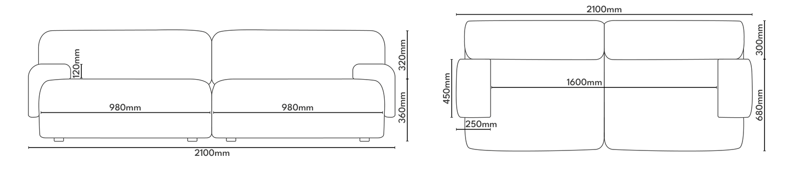 Modular 2-Seater Sofa UMI Stone Black